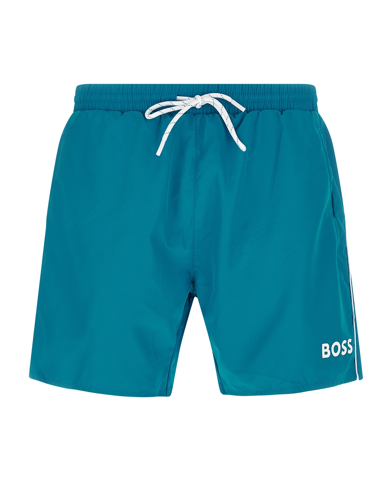 'Starfish' swimsuit in natural quick-drying fabric with front logo print, drawstring elastic waistband, pockets, inner mesh briefs.
