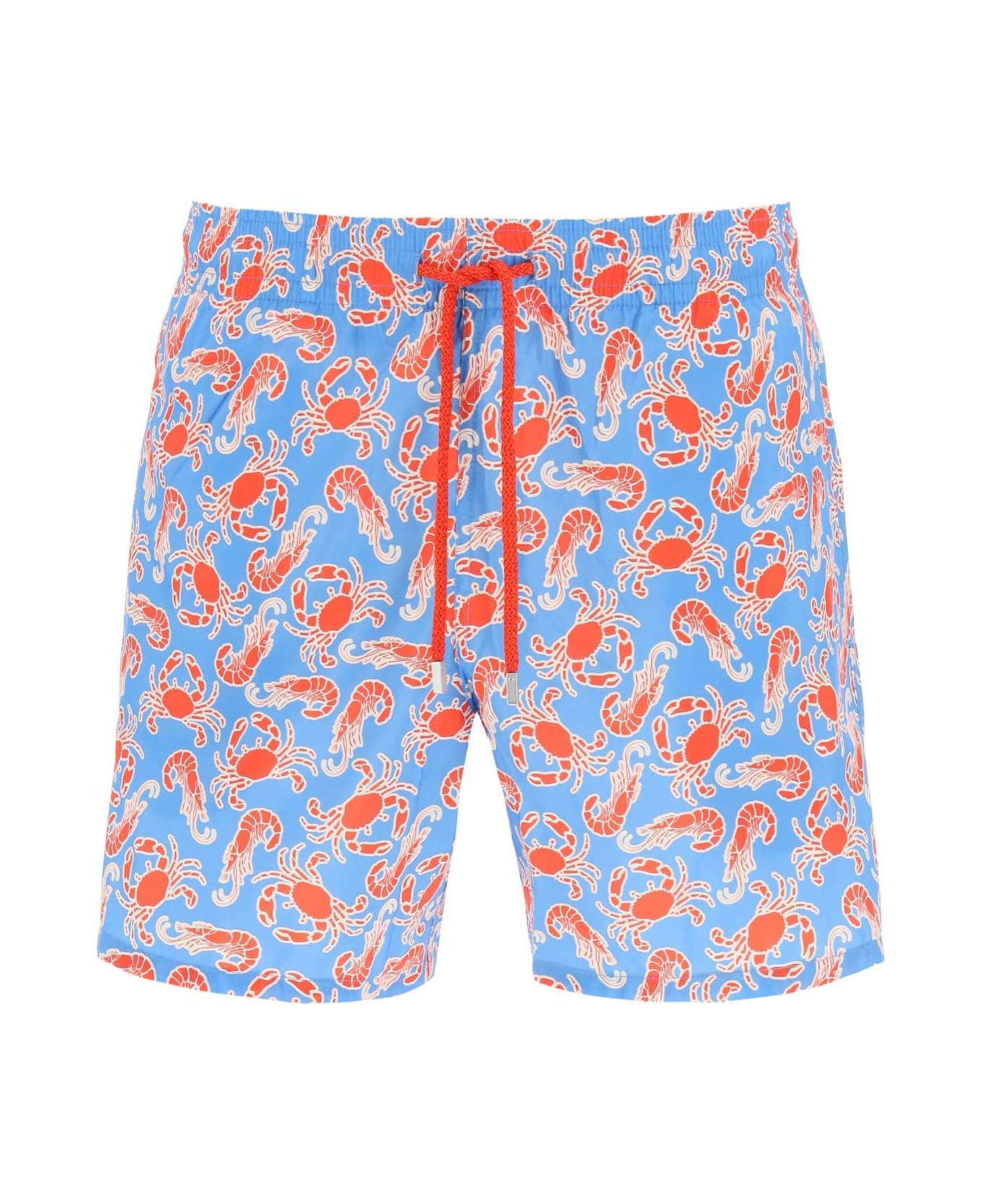 Vilebrequin swimtrunks crafted from technical fabric with all-over "Crabs & Shrimps" print, elastic waistband with drawstring, two side welt pockets and one back zippered pocket. Stretch micro mesh inner briefs. The item in photo is size M.