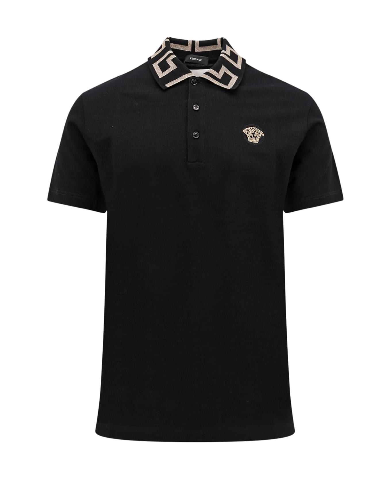 - Ribbed Collar With Greca Embroidery - Closure With Three Buttons And Short Sleeves - Taylor Fit - Medusa Embroidered Patch - 100% Cotton