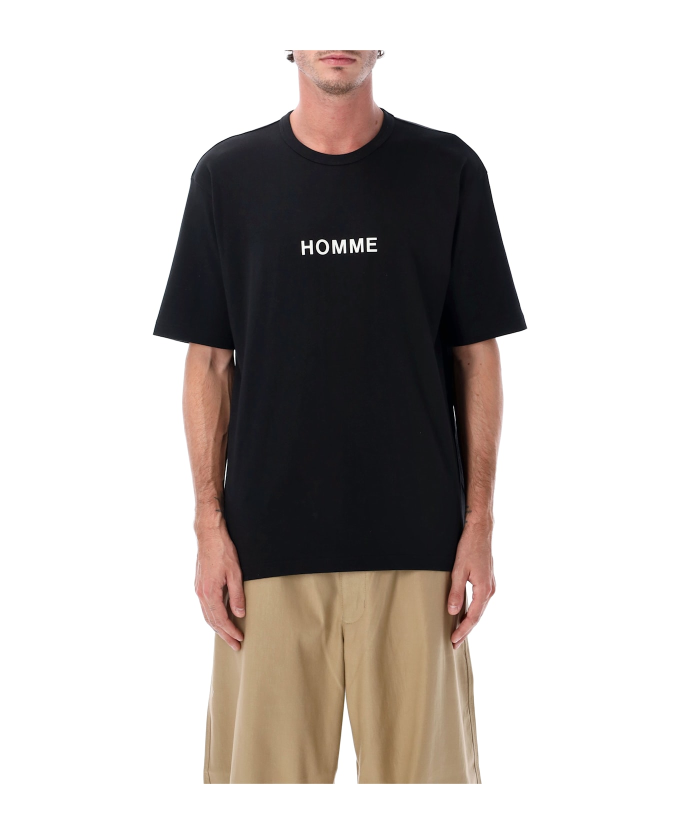 This Comme Des Garçons Homme T-shirt Is Crafted From Pure Cotton And Designed With A Clean, Relaxed Silhouette. Defined By Its Crew Neckline And Bold "homme" Logo Print At The Chest, It Embodies The Brand s Minimalist Yet Distinctive Aesthetic. Comfortable And Versatile, It Works Effortlessly As A Layering Piece Or As A Statement On Its Own. Crew Neckline Short Sleeves Printed "homme" Logo At Chest Relaxed Fit Andrea Is 1,90 M And Wears Size L
