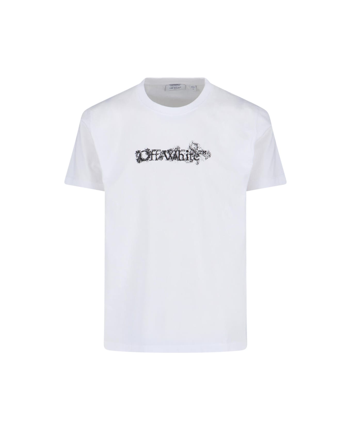 Off-White 'Flower Skate' white cotton crew neck t-shirt with short sleeves, contrast logo print on the front, maxi Arrow print on the back, ribbed trims, straight hem. Composition: 100% Cotton