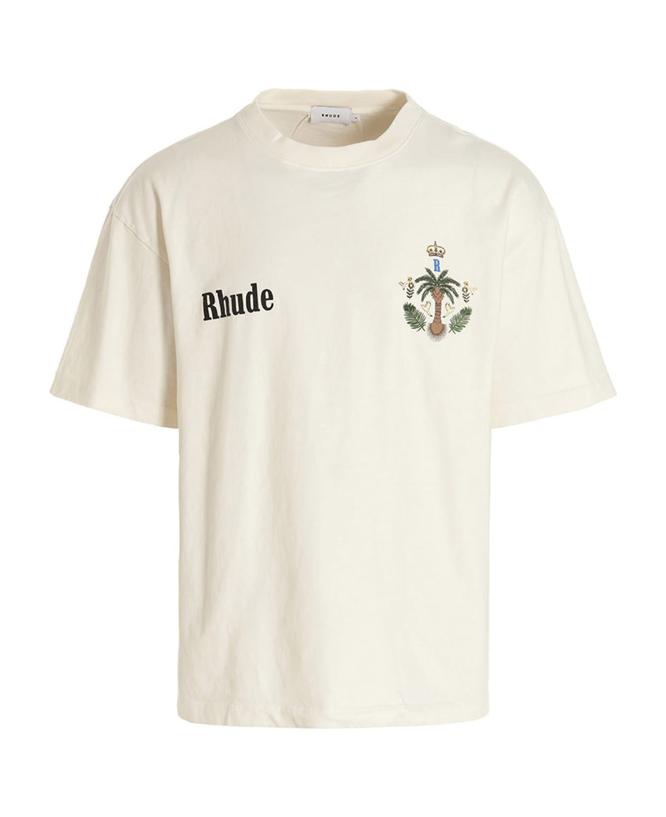 'Rhude Las Palmas cotton, crew neck t-shirt with a front and back logo print, and short sleeves.