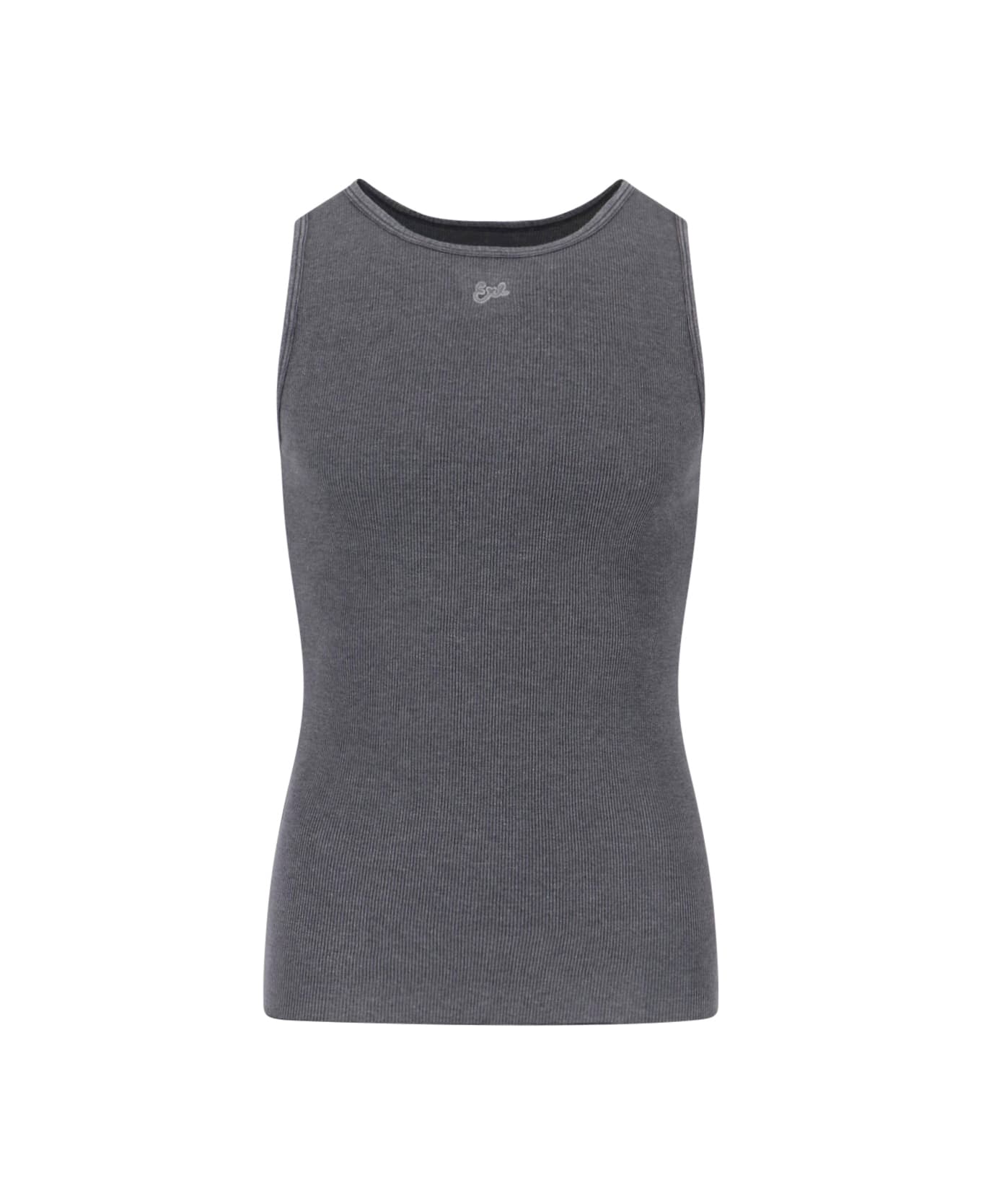Erl tank top in dark grey cotton blend with crew neck, sleeveless, logo embroidery on the front, straight hem.