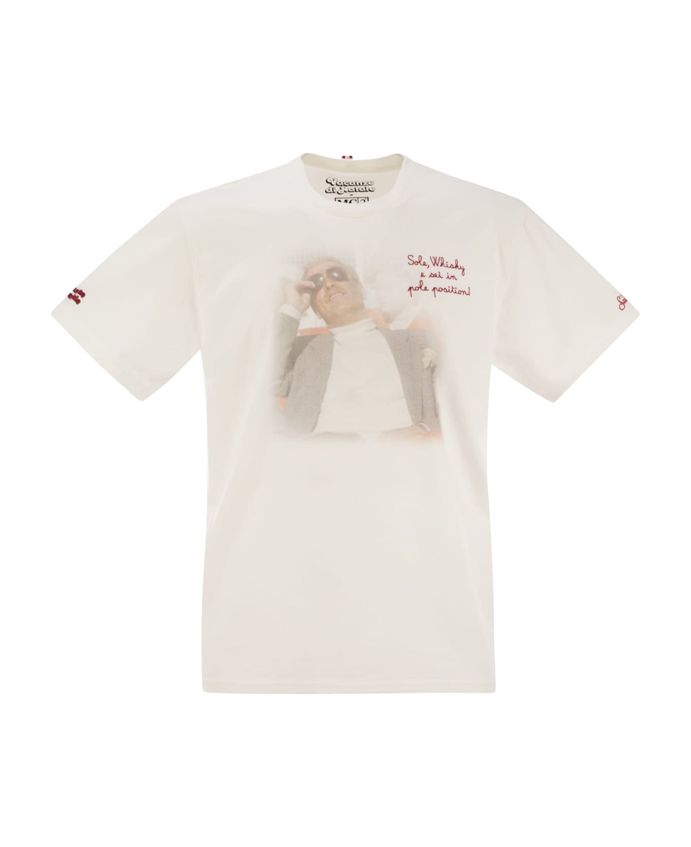 Be inspired by the unique colours and prints of MC2 Saint Barth, this men's t-shirt is perfect for casual and sporty looks, made of cotton with a "SSole, whisky e sei in pole position" chest print. - Crew neck - Regular fit - Short sleeves - Embroidery on both sleeves DESIGNER ID: ARN0001 03547G