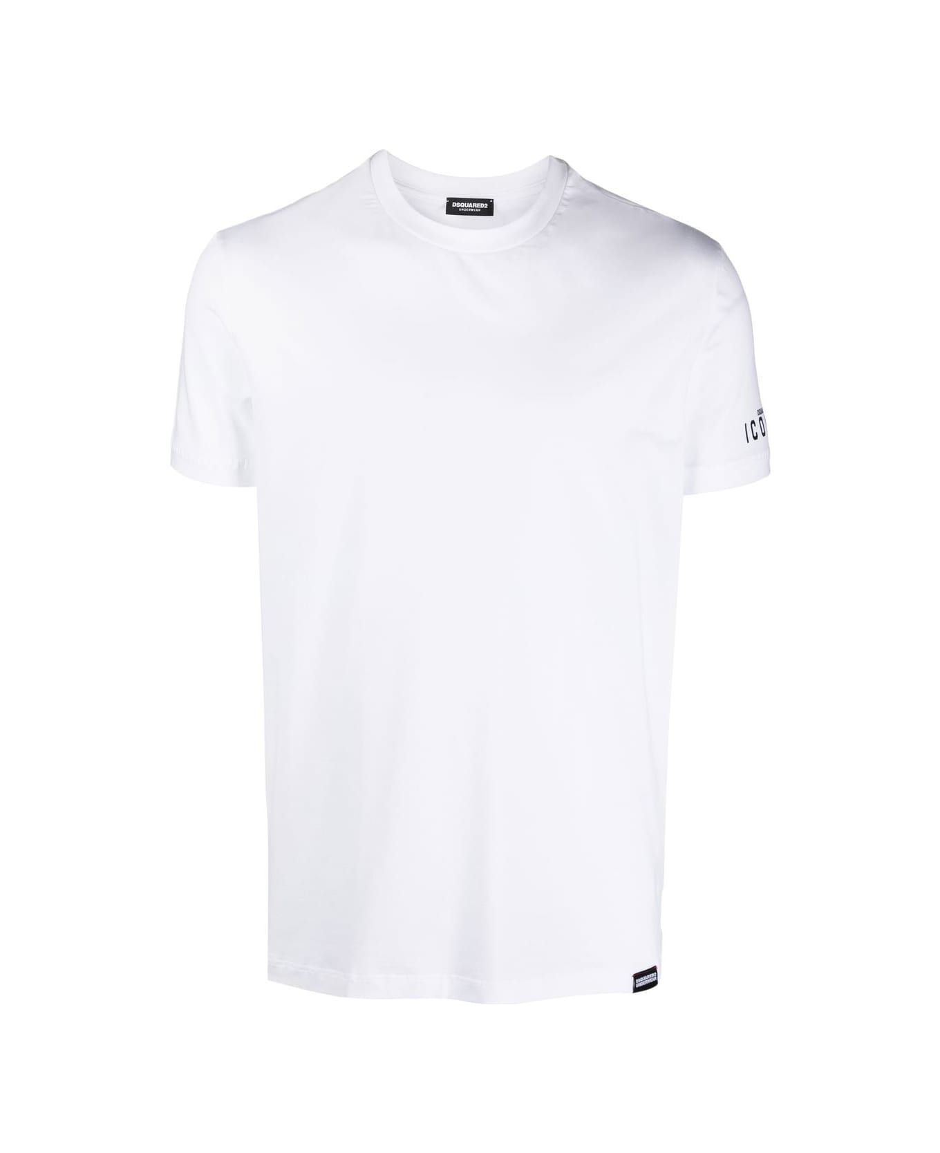 T-shirt Crewneck Short sleeves Logo print on left sleeve Straight hem Tonal stitching White Stretch cotton Regular fit