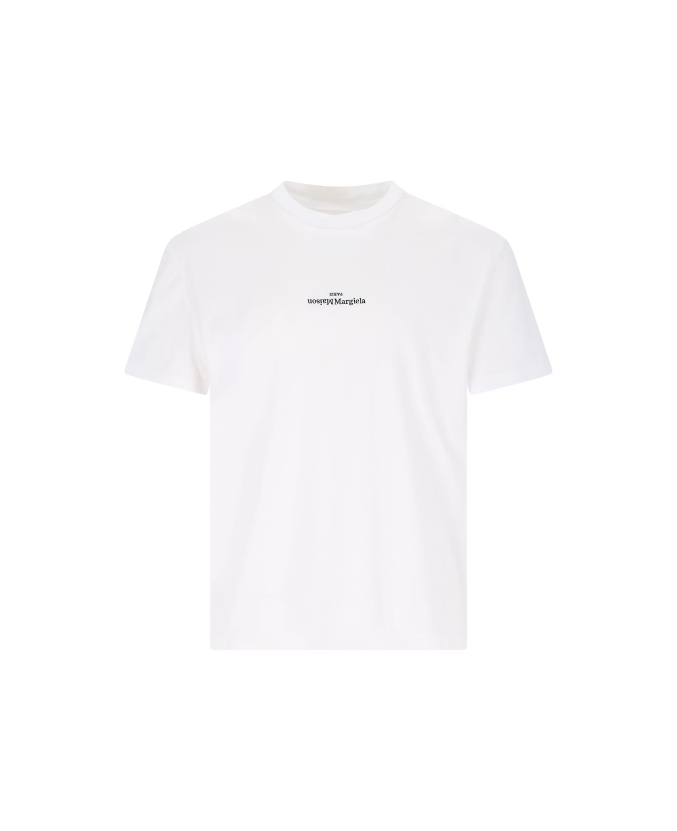 Maison Margiela "Distorted Logo" T-shirt, cotton, white, crew-neck, short sleeves, black embroidered logo on chest, straight hem.