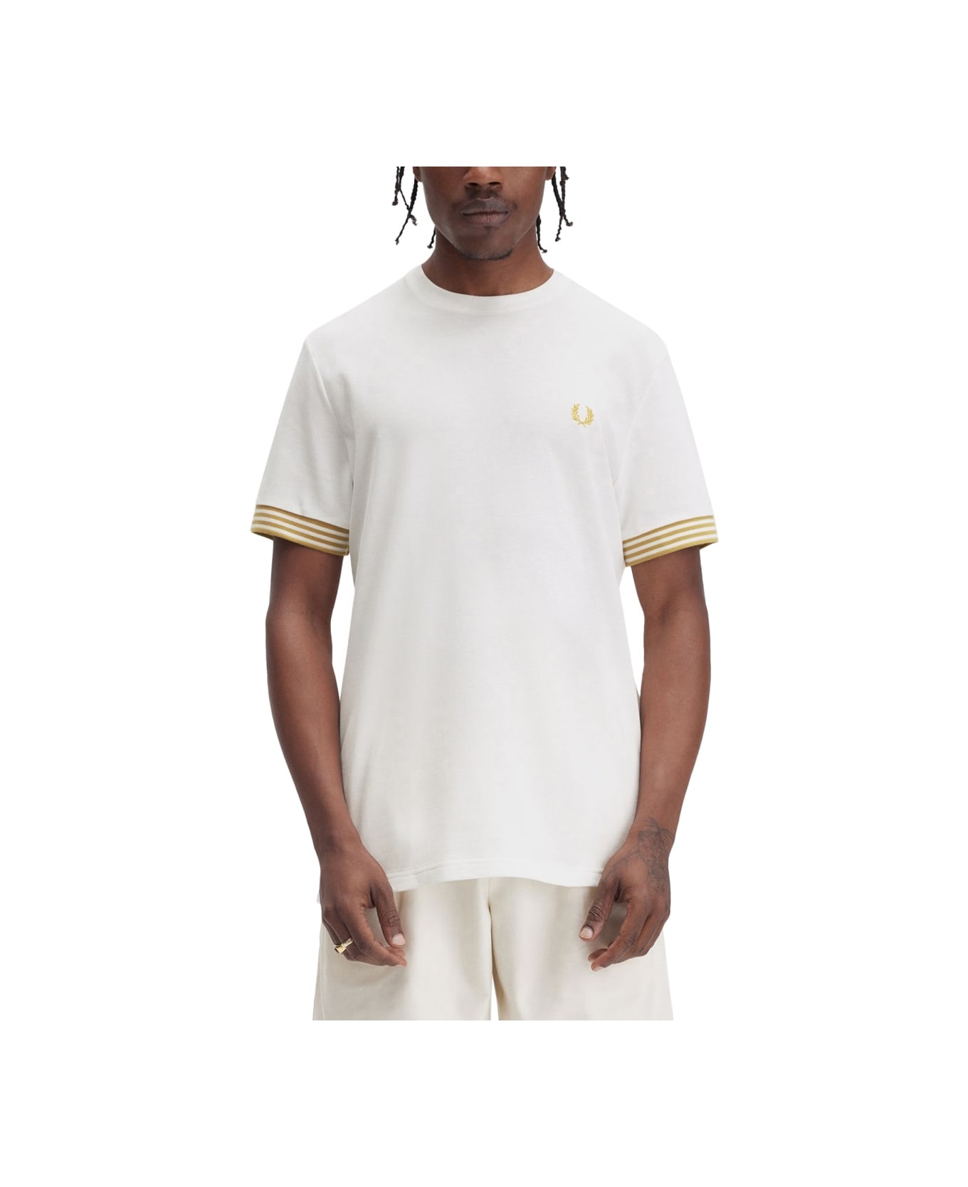 T-shirt With Striped Manihe Border