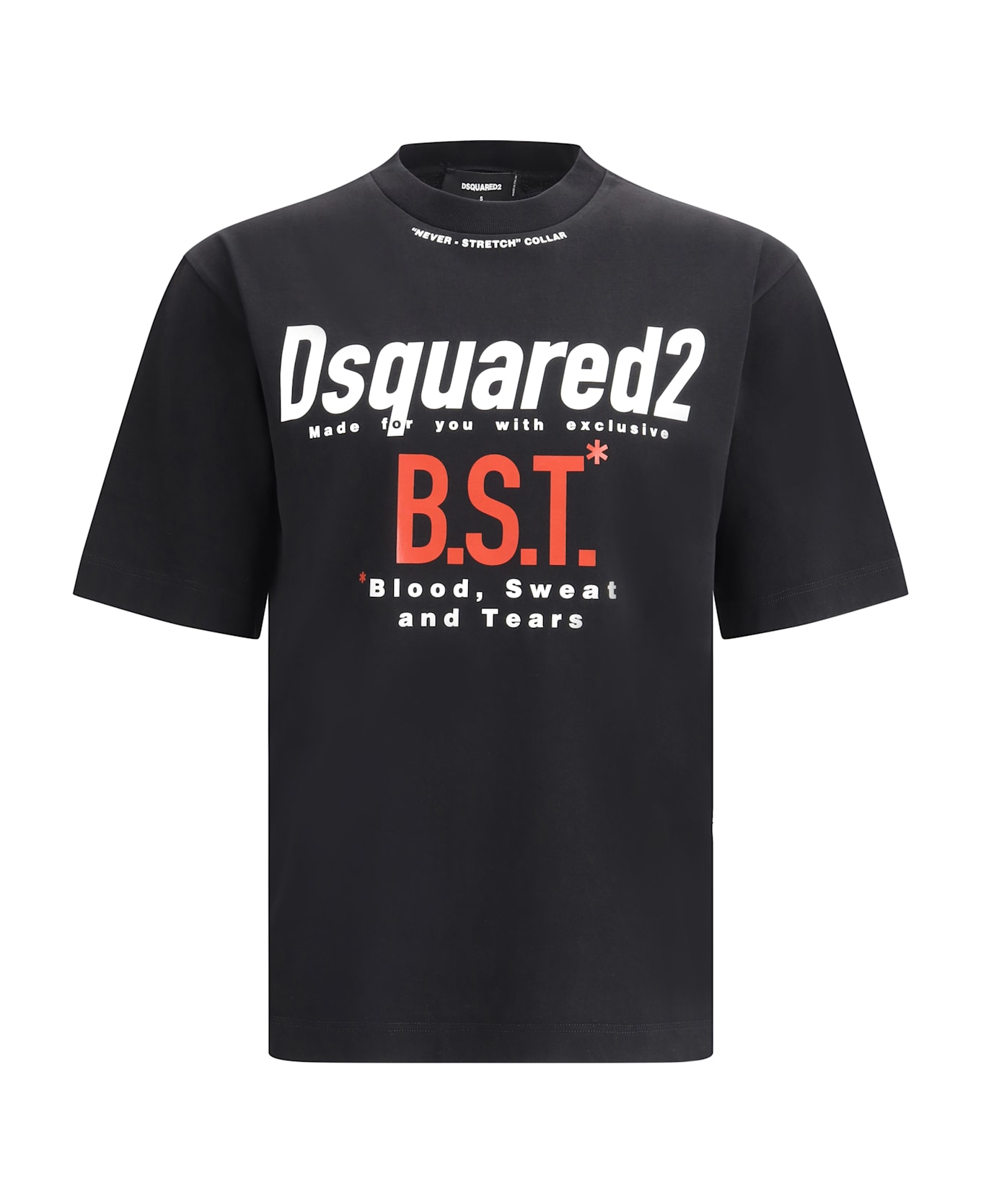 Cotton t-shirt by dsquared2, ribbed crew neck, contrasting iconic brand monogram maxi print on front, monochrome pattern, regular fit.