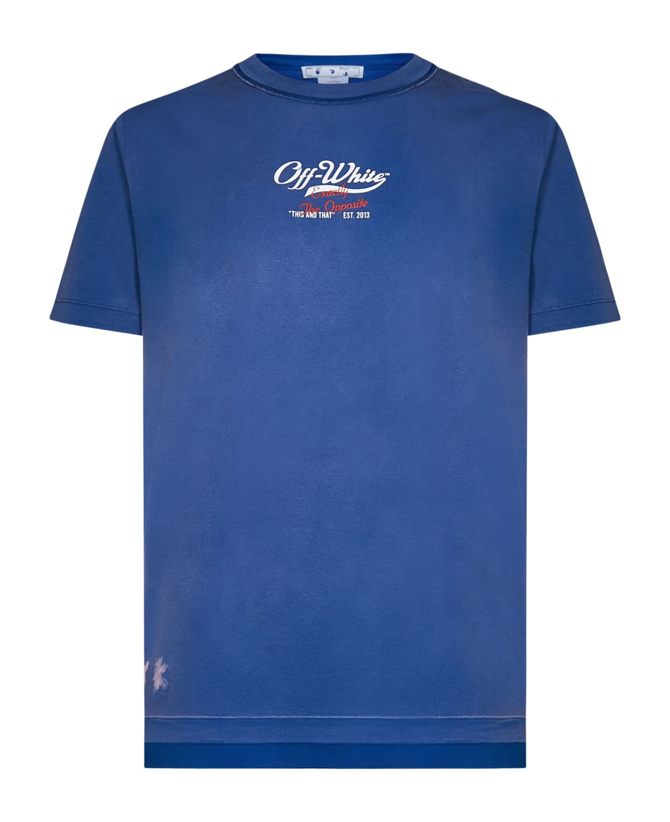 White Off-White logo with red "EXACTLY THE OPPOSIT" text printed at chest