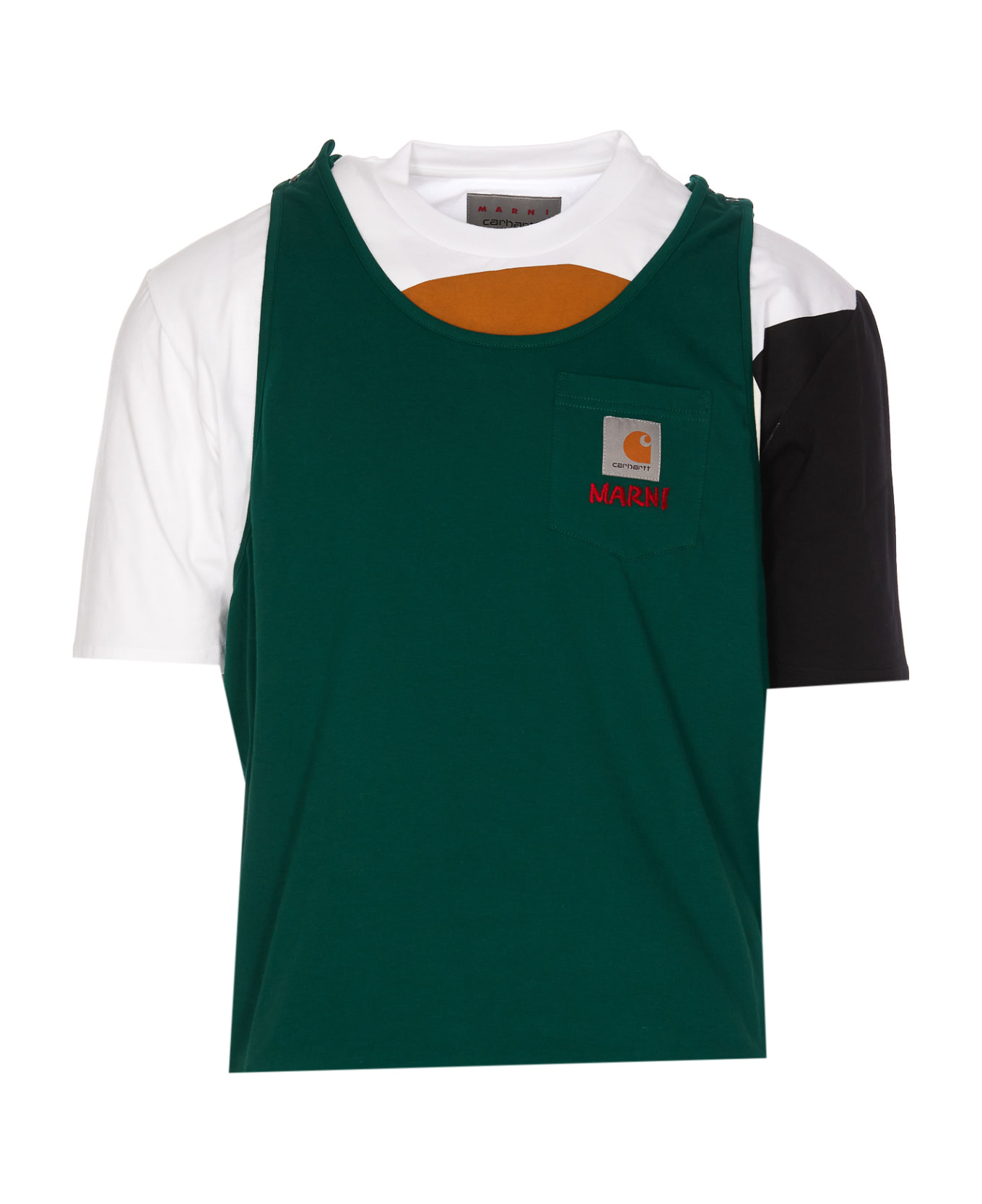 Marni Carhartt, black/green tank top, crewneck, printed logo, frontal pocket with logo Composition: 100% Cotton