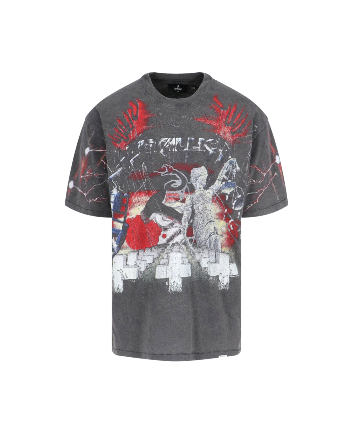 Represent X Metallica 'Master of Puppets' t-shirt in grey cotton blend with distressed wash, crew neck, short sleeves, maxi multicolor print on the front and back, straight hem.
