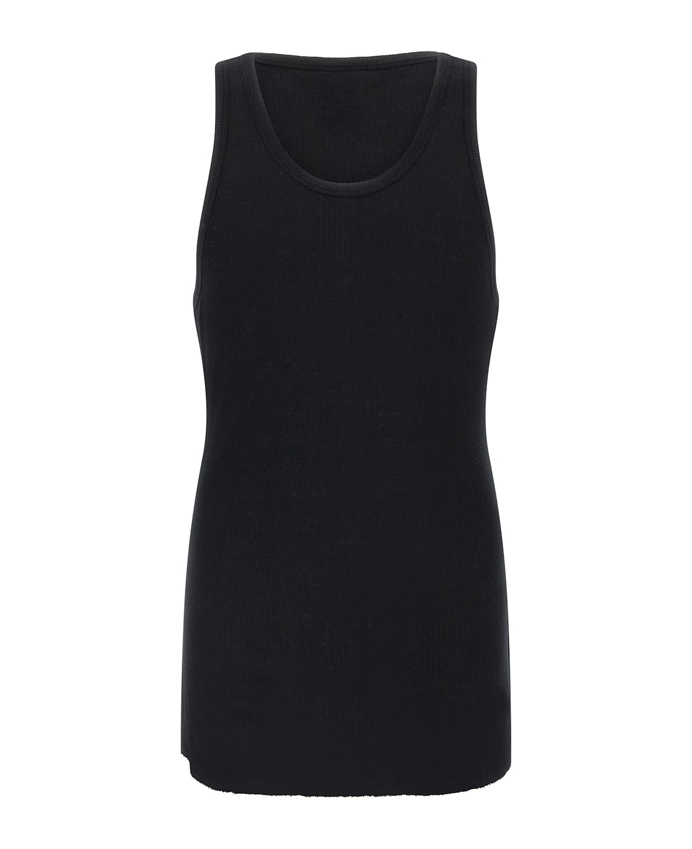 '947' tank top in ribbed cotton and linen blend, round neckline, rounded hem with raw cut hem.