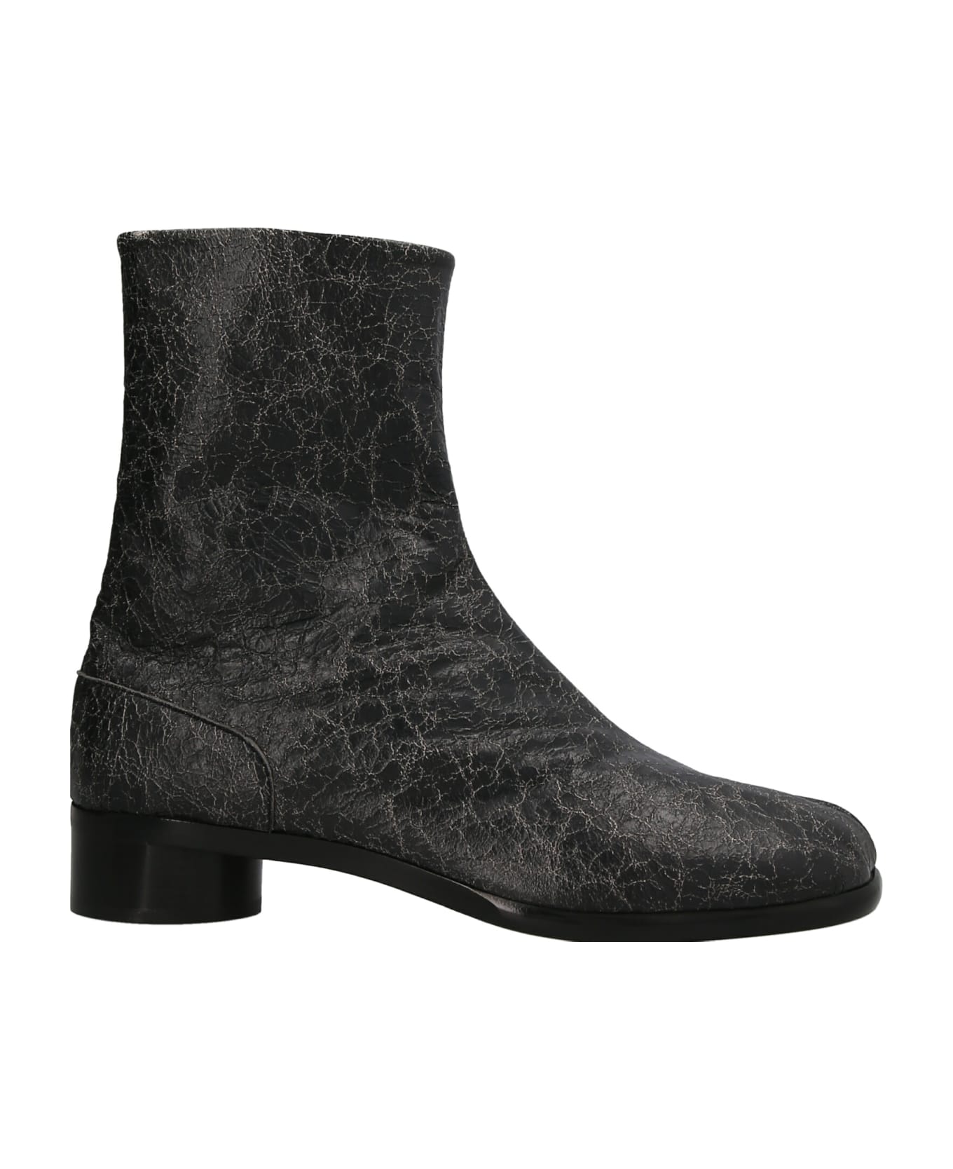 Tabi' ankle boots in crackle leather with crackle effect, leather sole, side hook-and-over closure, and the iconic split toe. Composition: 100% leather