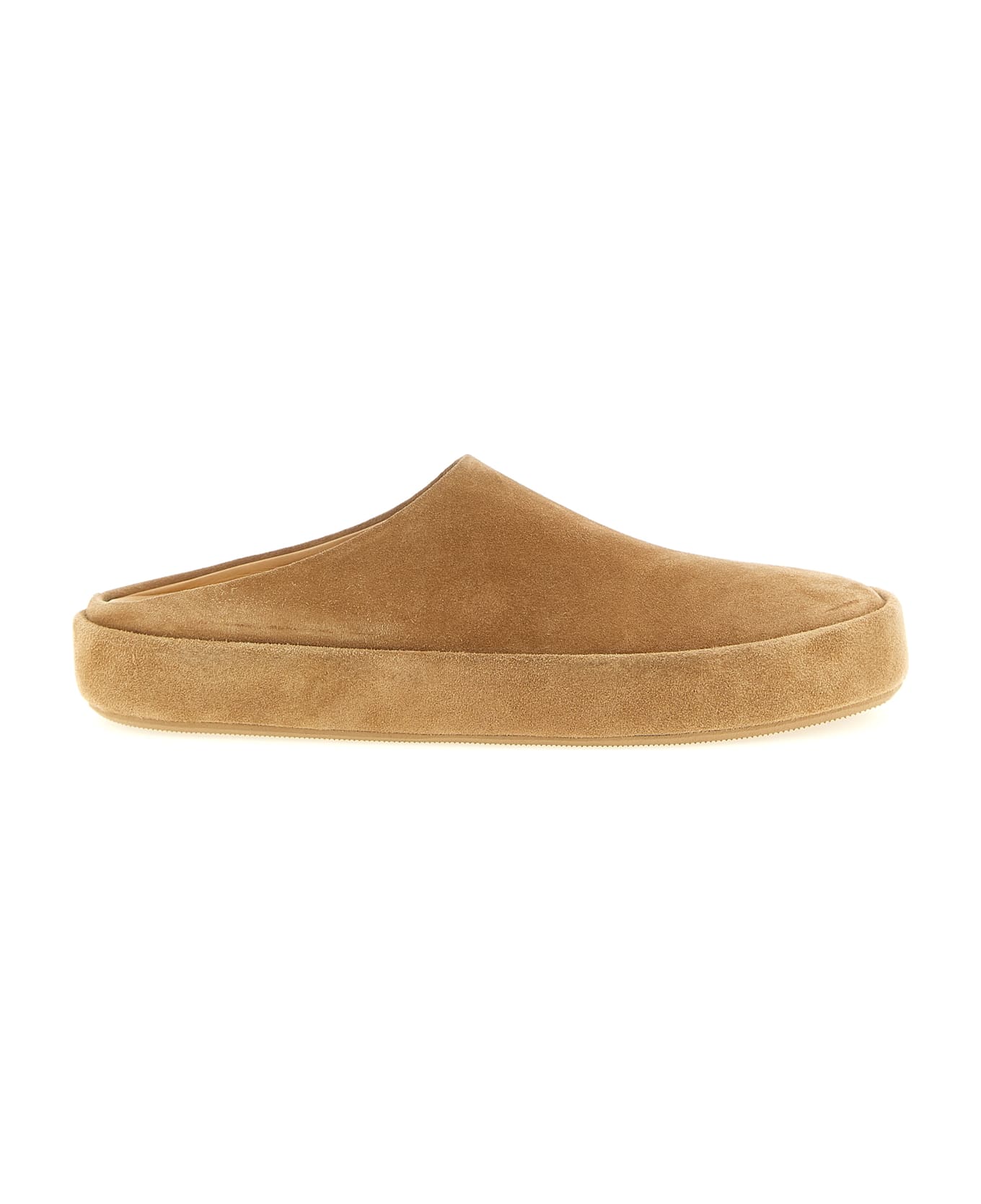'Cassapelle' reverse leather mules, bag construction, rounded toe, rubber sole covered with a stitched band.