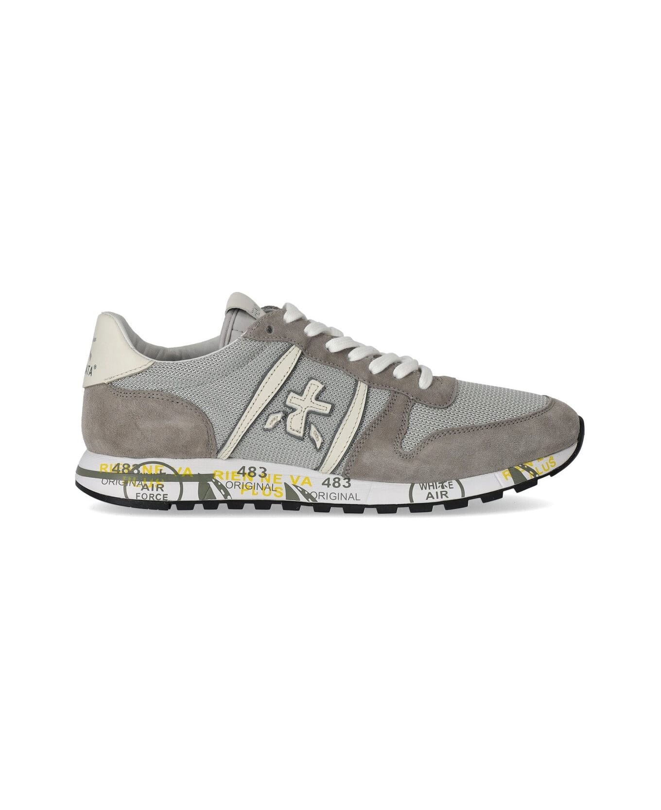 Eric 6140 Sneaker from Premiata Eric 6140 sneaker by Premiata made of mesh and suede in shades of grey and beige. Nylon tongue, logo sewn on the side, leather lining and insole. Rubber sole with typical brand prints, height 3 cm.