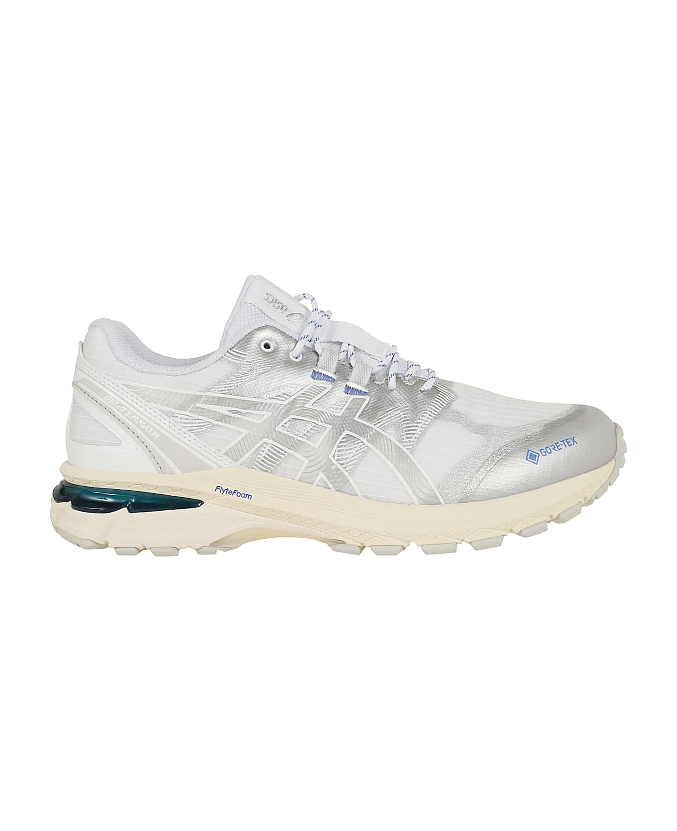 GEL-TERRAIN GTX Sneaker BY ASICS. Inspired by the GEL-FUJITRABUCO series. Dynamic lines of the first trail running models revisited without welded seams, also revisited with elements without welded seams, which also helps keep feet dry.