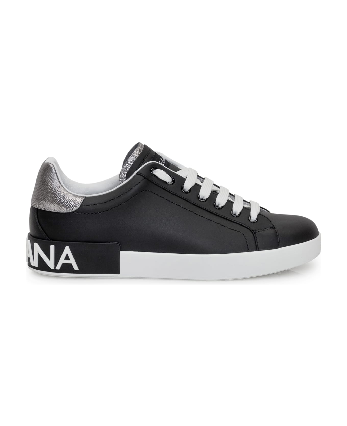 Black and white low-top sneaker. Closure with laces. Logo on tongue, heel. Silver contrast heel. Composition: Outside:, 100% Leatherlining:, 100% Leathersole:, 100% Rubber