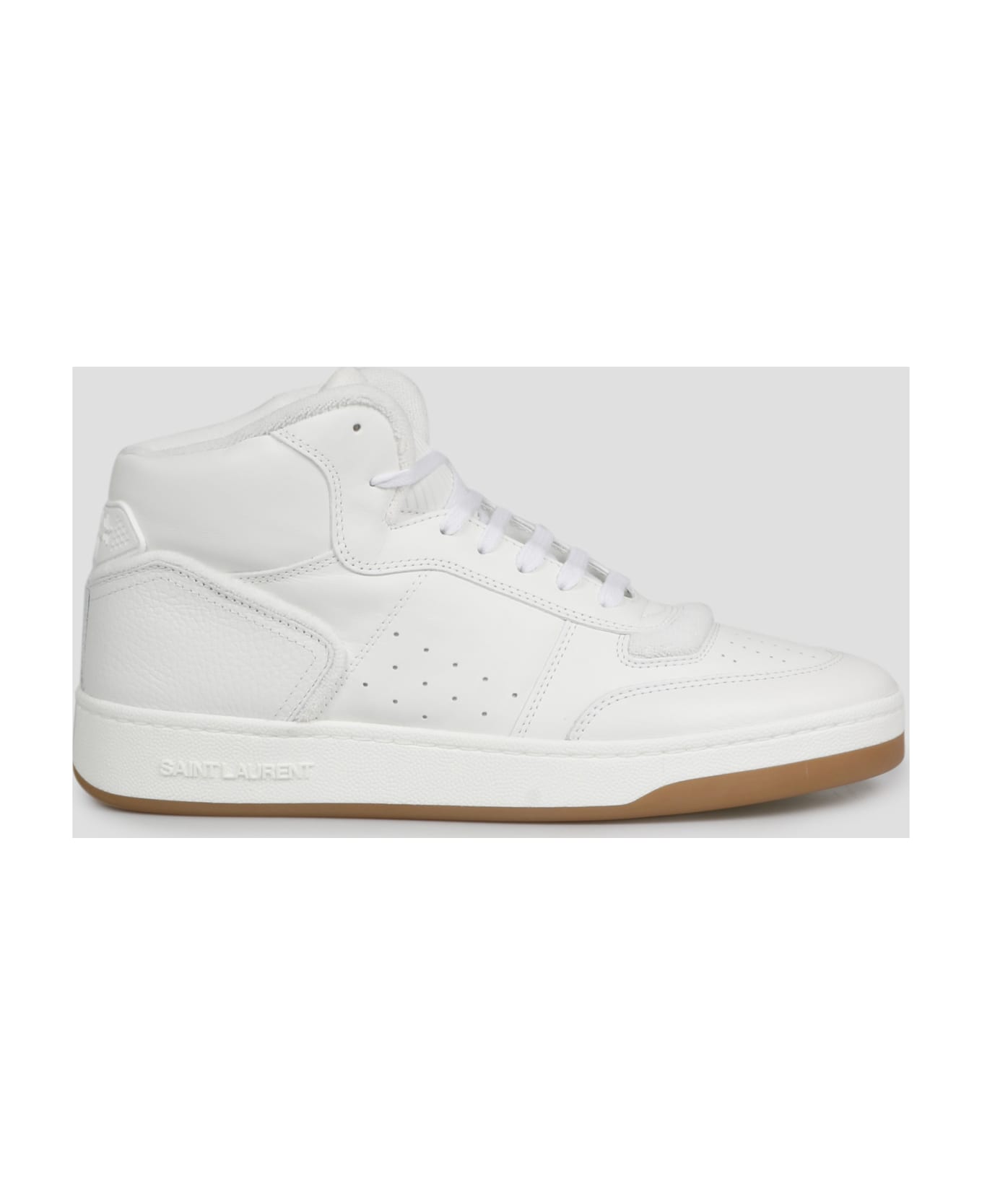 Saint Laurent mid top sneakers, in calfskin with terry cotton trims. - Perforated round toe
