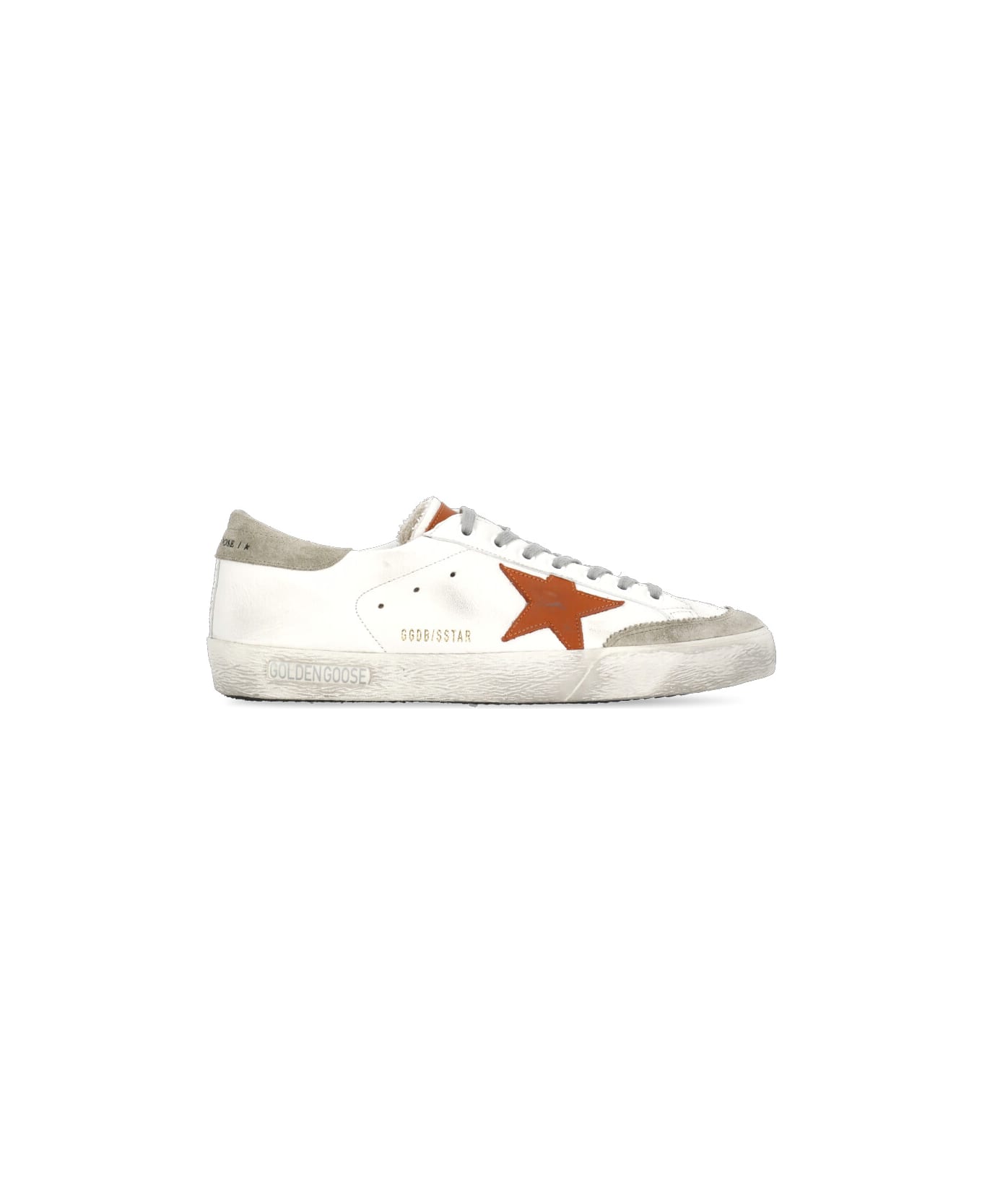 - White Golden Goose leather sneakers for men - Round toe - Front laces fastening - Side contrasting color Iconic Star logo - Logoed tongue - Logoed upper heel - Contrasting color suede leather inserts - Used effect - Rubber sole