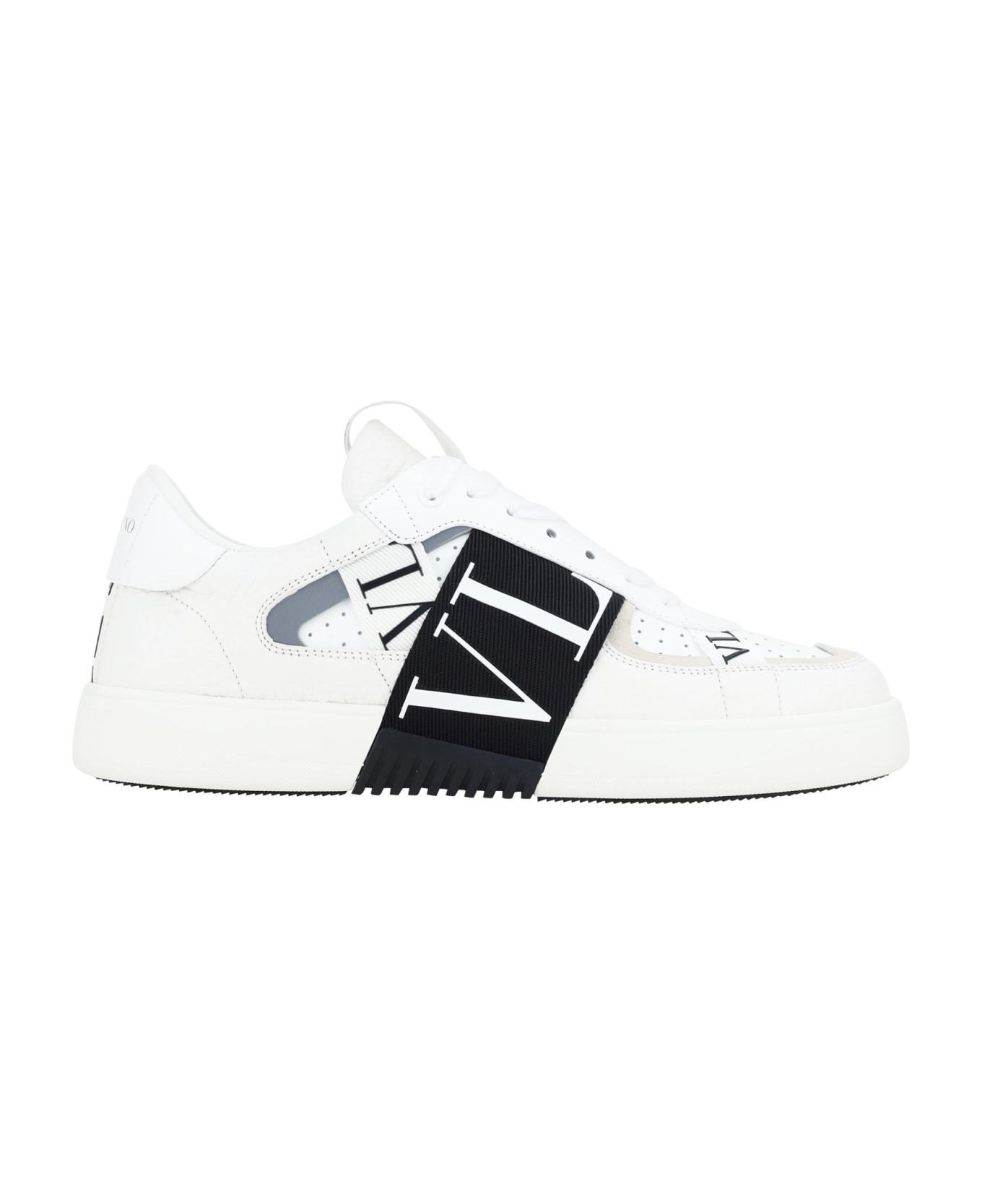 Calfskin vl7n sneakers by valentino garavani, perforated round toe, flat sole, front lace-up closure, contrasting embroidered logo label on front tab, paneled design, webing bands with contrasting iconic brand monogram applied to side panels. Composition: 100% % Calf Leather Bos Taurus, 100% % Rubber