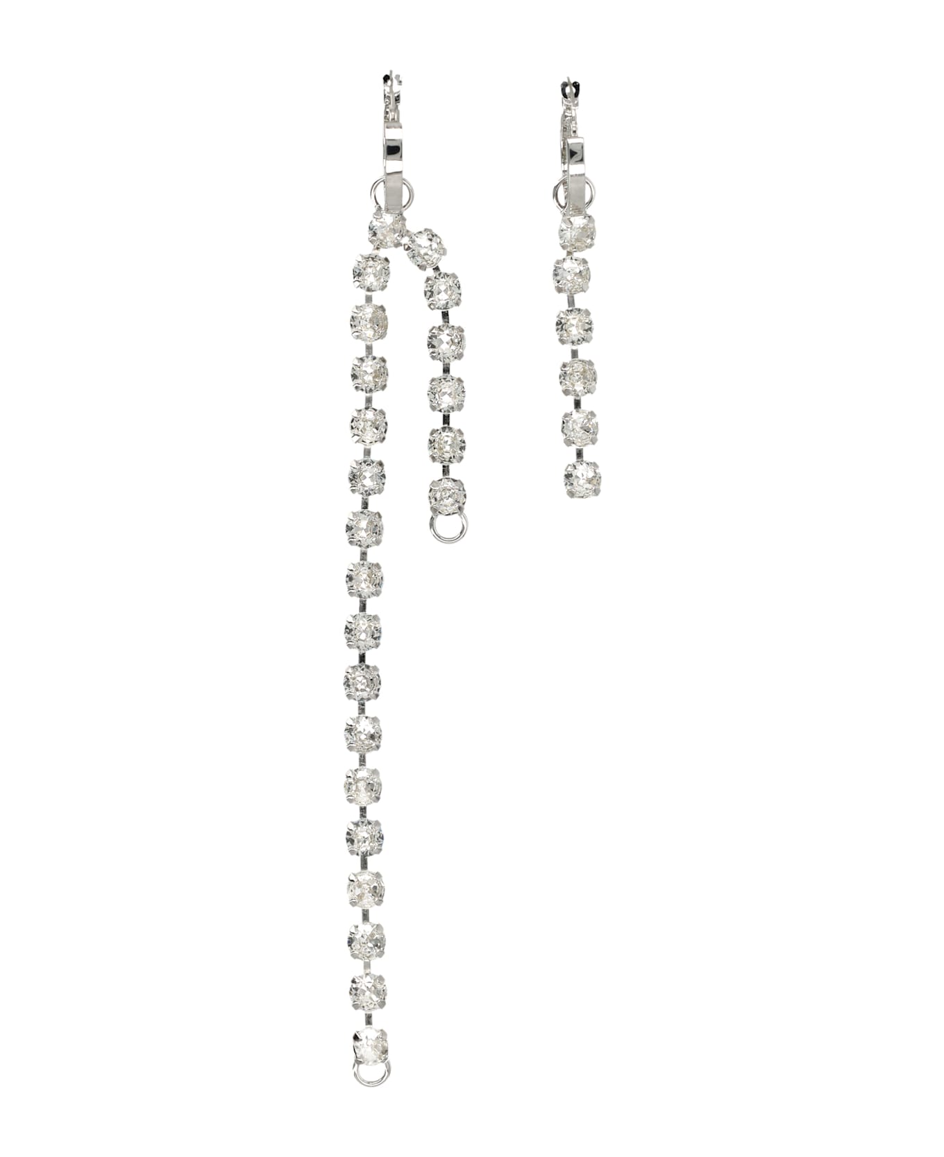 The Mm6 Maison Margiela Chain Earrings Reinterpret Classic Jewelry Through A Contemporary And Unconventional Lens. Defined By An Asymmetric Design, The Pair Combines Polished Hoop Earrings With Cascading Crystal Chains, Creating Dynamic Movement And Visual Contrast. Asymmetric Earrings Design Polished Metal Hoop Earrings Crystal Chain Pendants With Graduated Length Post-back Closure Length: 14,5 - 4,5 Cm