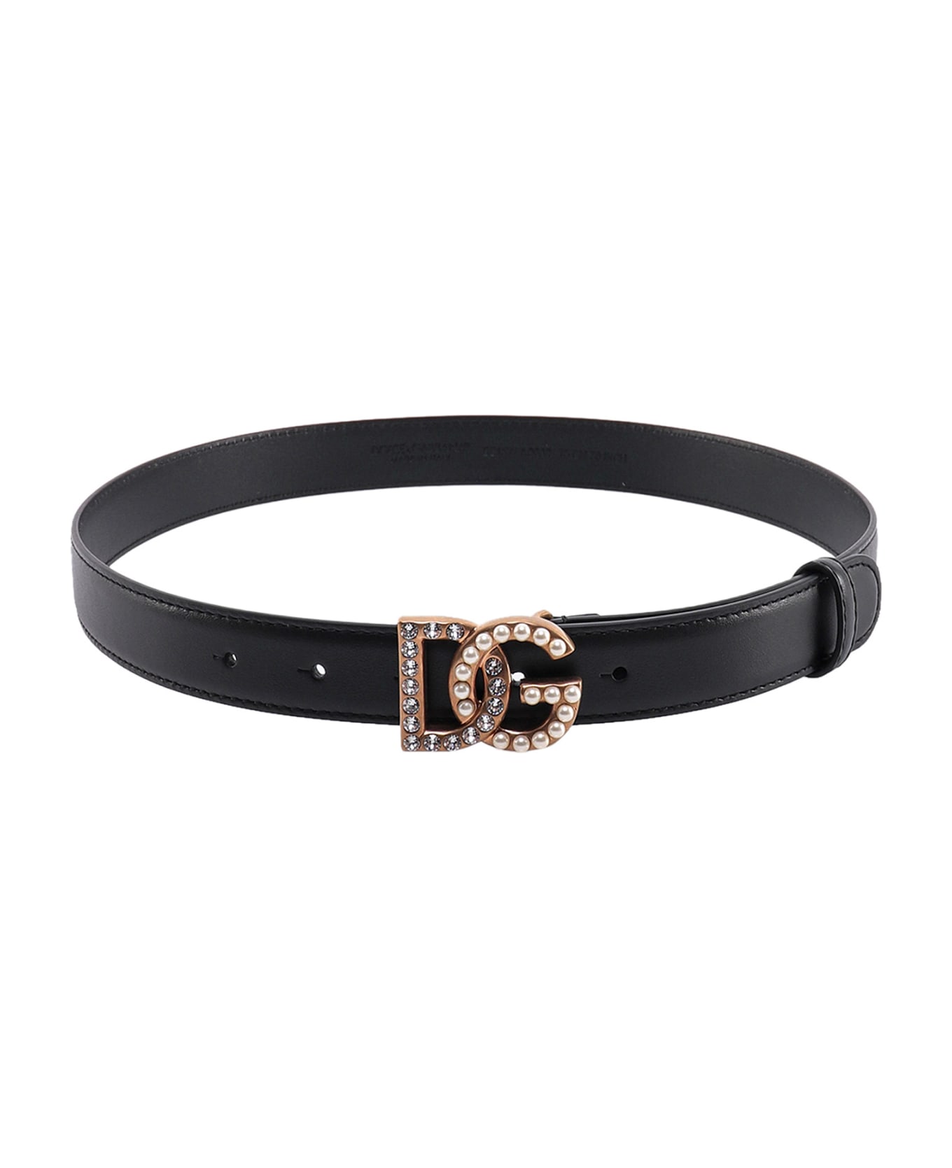 - Adjustable Closure - Buckle With Metal Monogram - Detail With Rhinestones And Pearls - Made In Italy - Leather