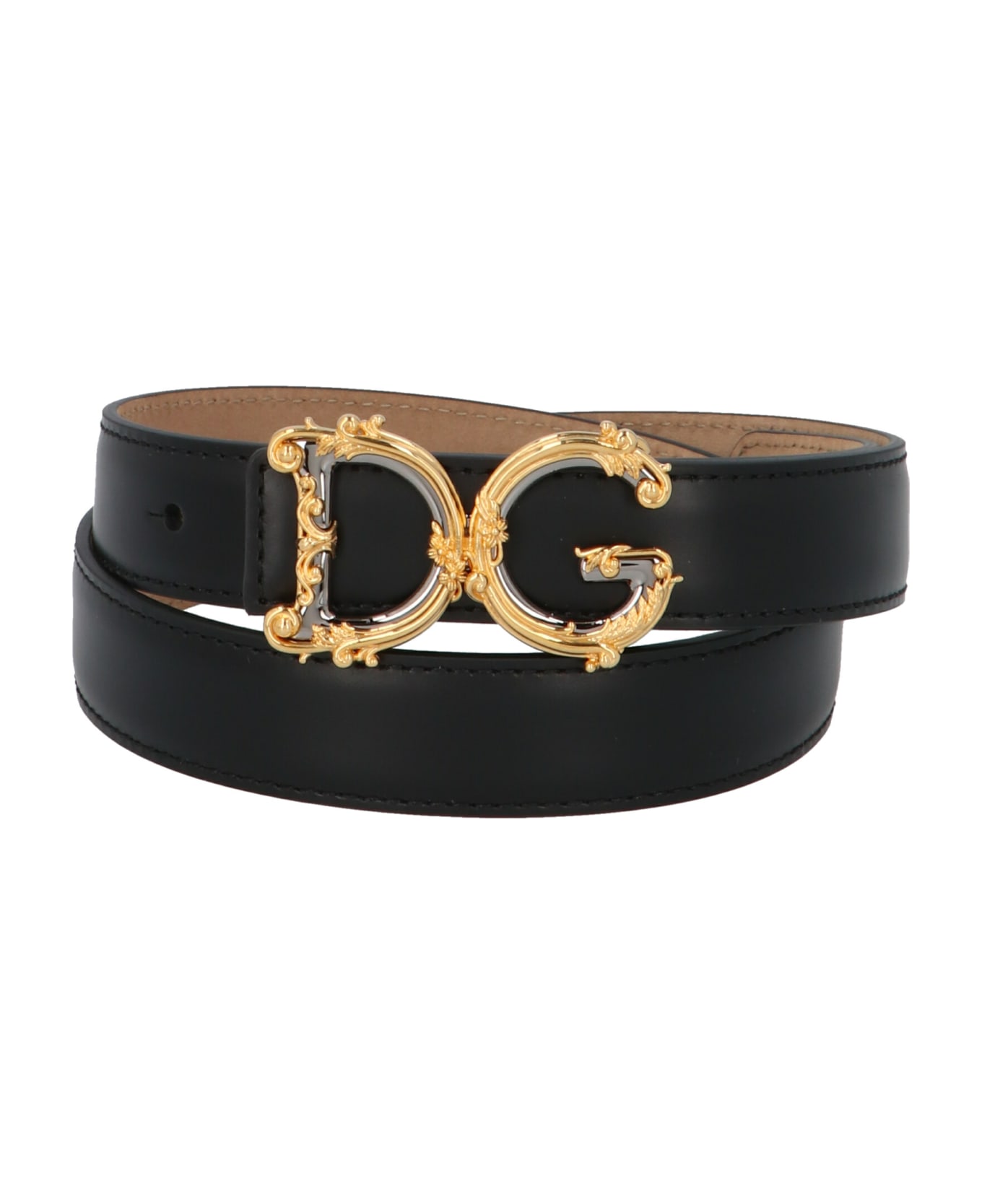 Docle&Gabbana lux leather belt with a gold metal logo buckle. Composition: 100% calf leather (bos taurus)