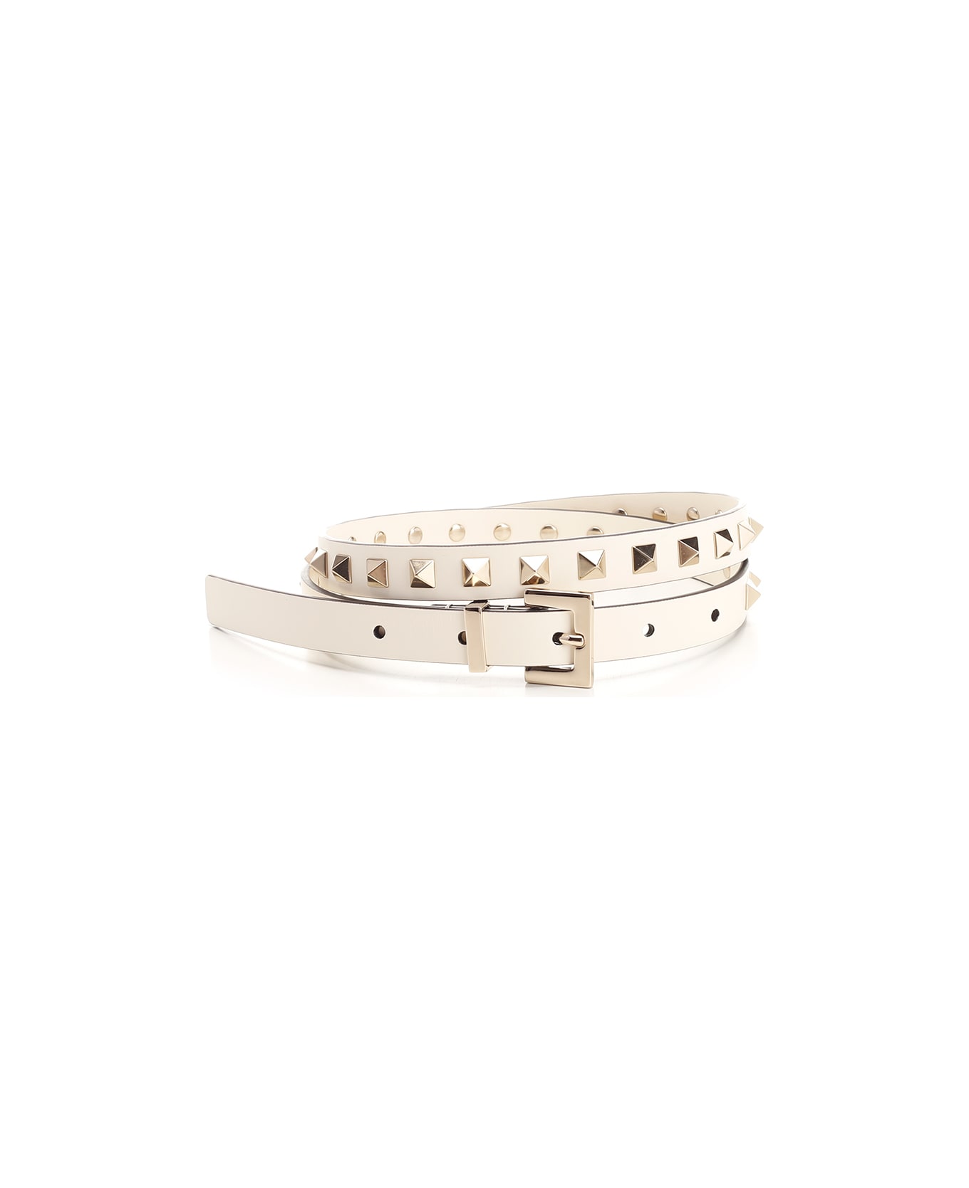 Ivory "Rockstud" belt from Valentino Garavani in leather, studs along the entire length, platinum hardware, height 1. 5 cm. Composition: I CALF LEATHER - BOS TAURUS