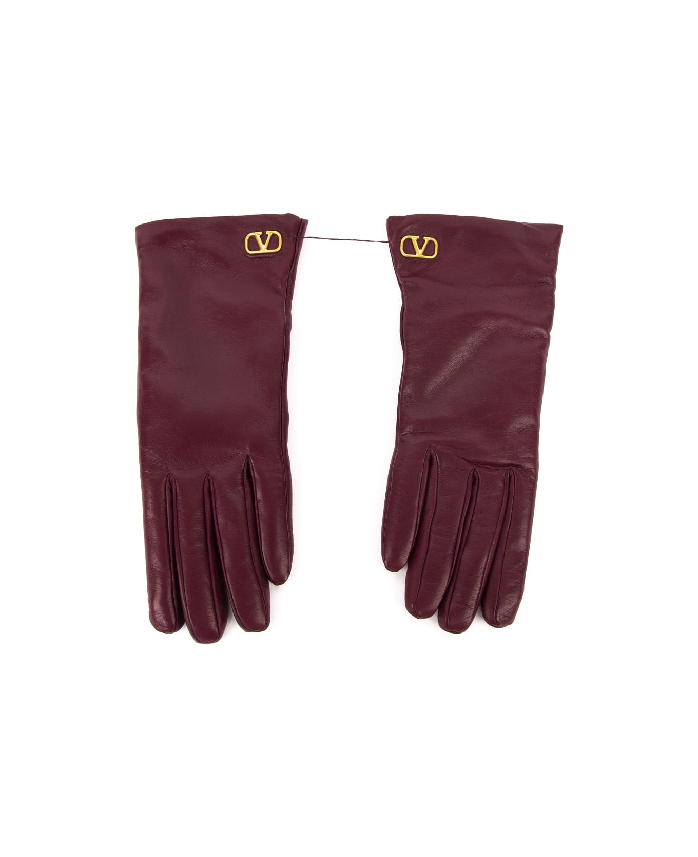 Burgundy Vlogo Burgundy Leather Gloves from Valentino Garavani