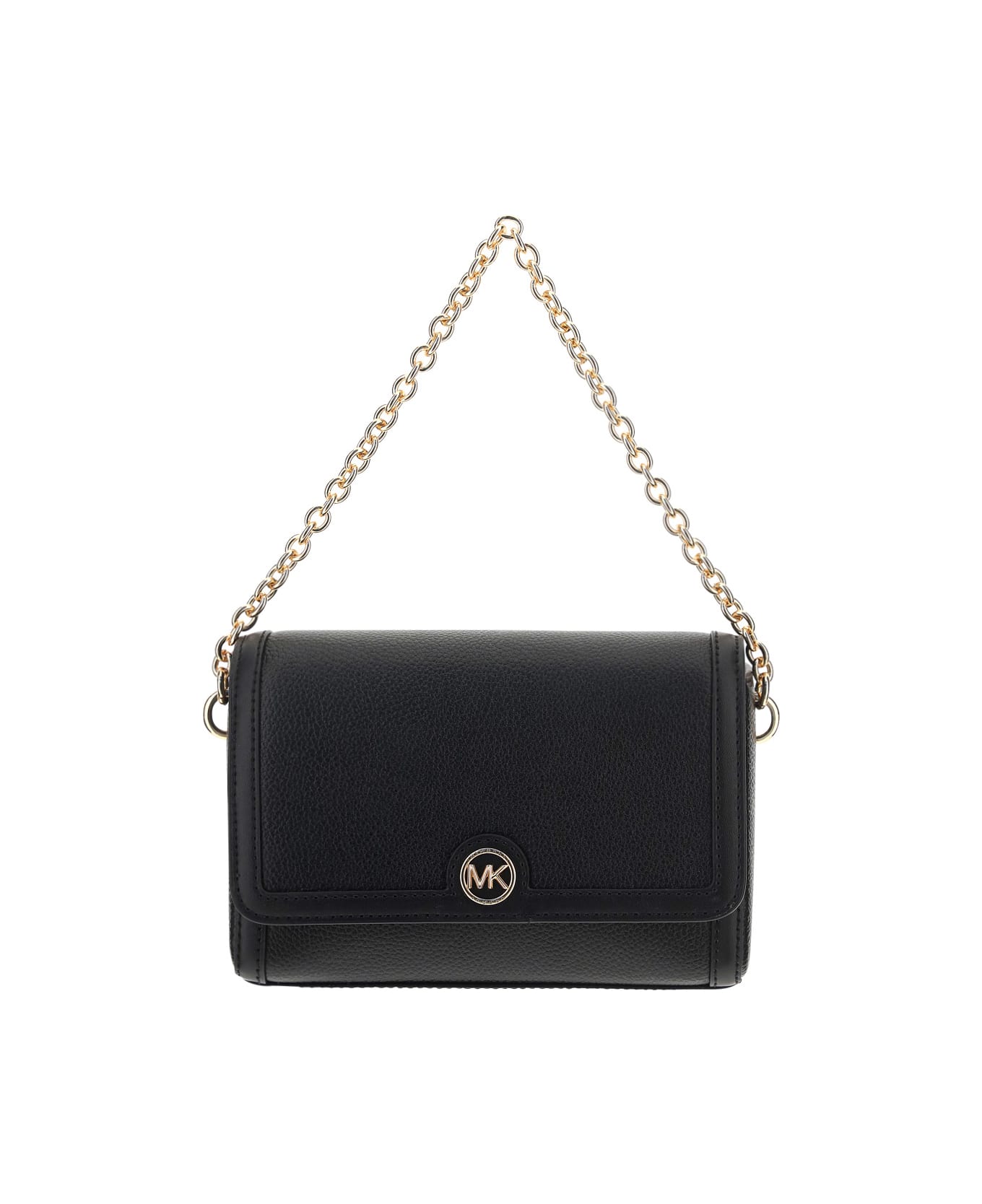 Calfskin freya shoulder bag by michael kors, chain handle, removable and adjustable shoulder strap, front closure with embossed logoed magnetic button, back fieltto pocket, four inside pockets, monochrome grained leather effect design.