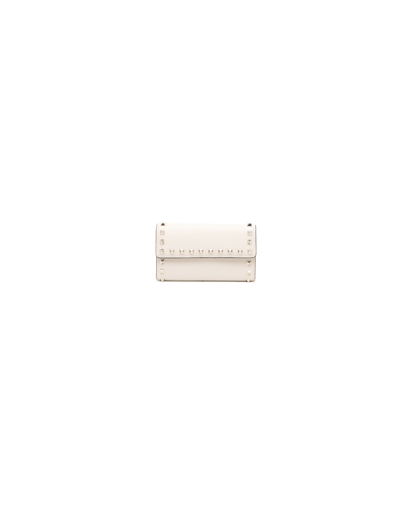 Wallet in grained calfskin BY VALENTINO GARAVANI. Snap button closure; card compartments and coin pocket with zip. Platinum-colored RockStud detail along the profile.