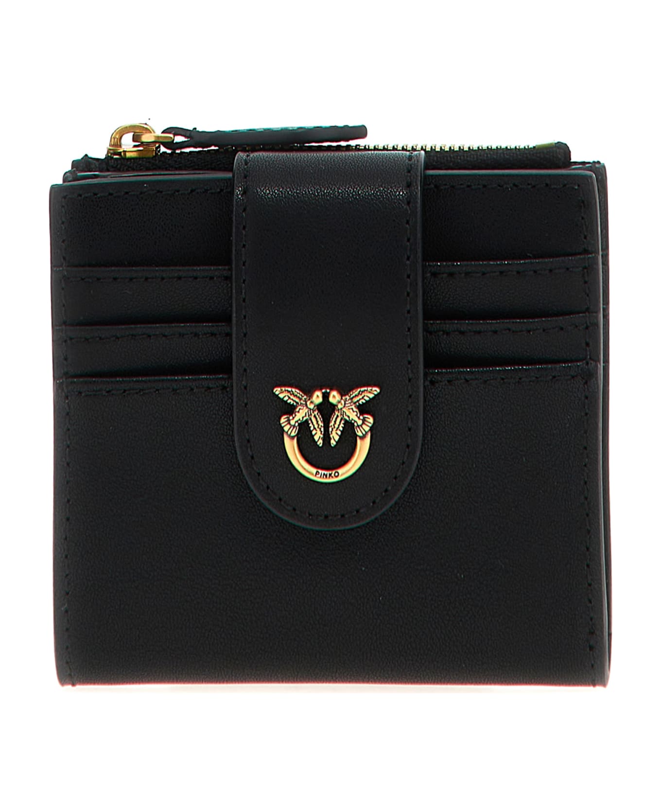 'Multi Purpose' leather wallet, button closure with metal logo appliqué, zip closure and card holder.