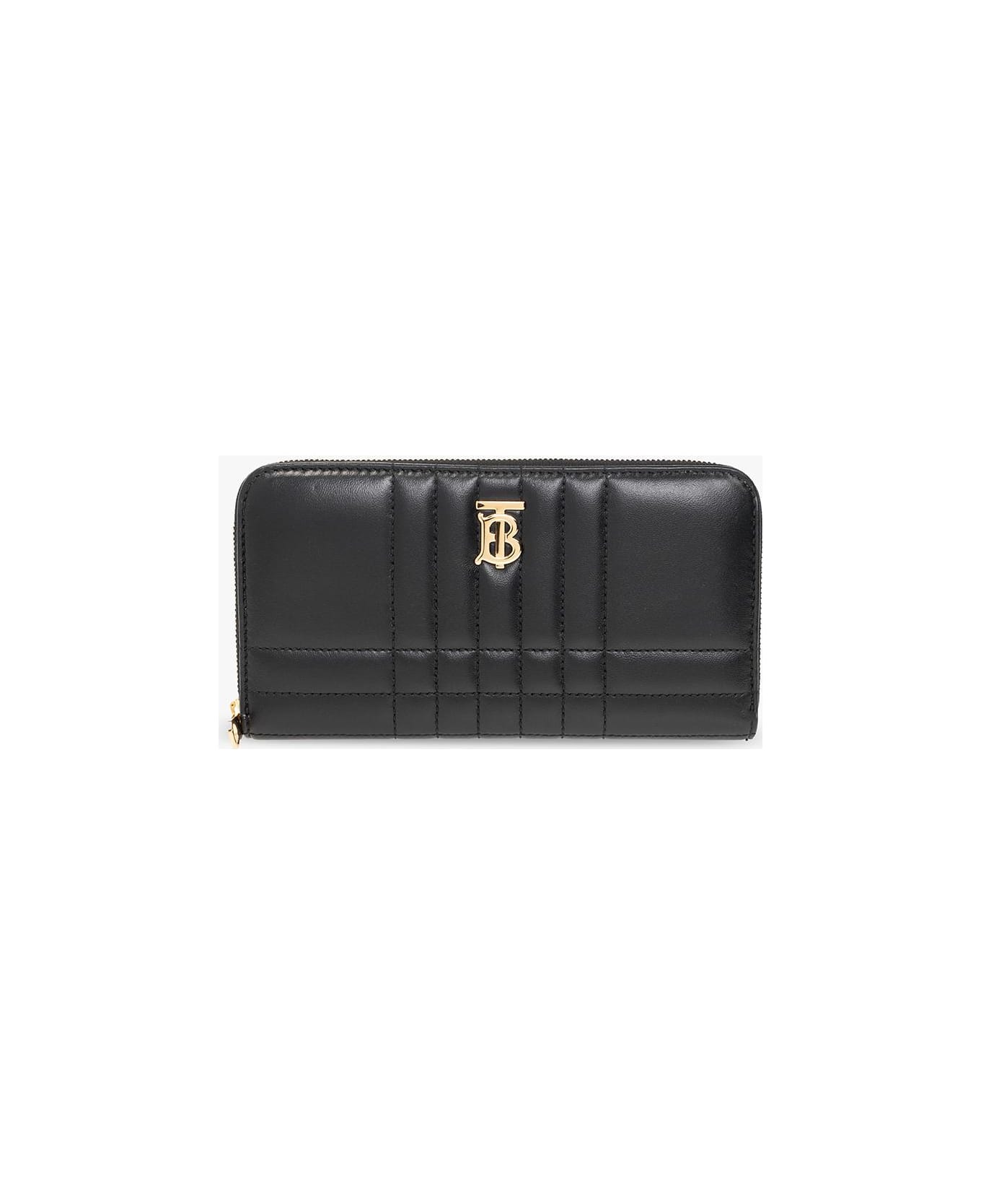 Black quilted wallet from Burberry. Made of lamb leather, this design features a zip fastening and metal logo detail in gold-tone. It has one internal compartment with a zip pocket, two slip pockets and twelve card slots. Composition: 100% Lamb Leather