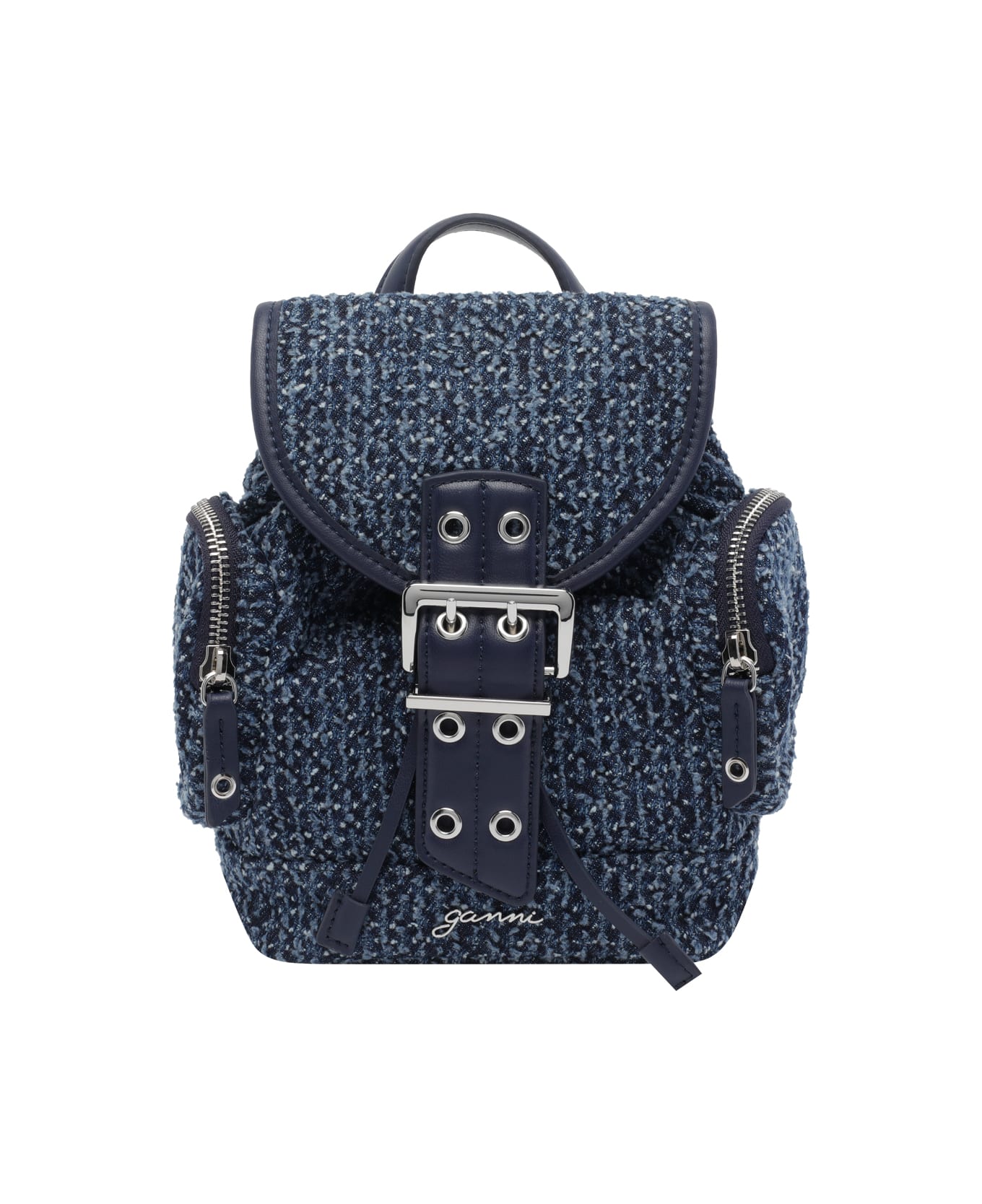 Ganni blue tweed backpack, coulisse and magnetic closure, inner zip pocket, 2 lateral external pockets woith zip, one handle, adjustable shoulder strap Composition: 100% Cotton