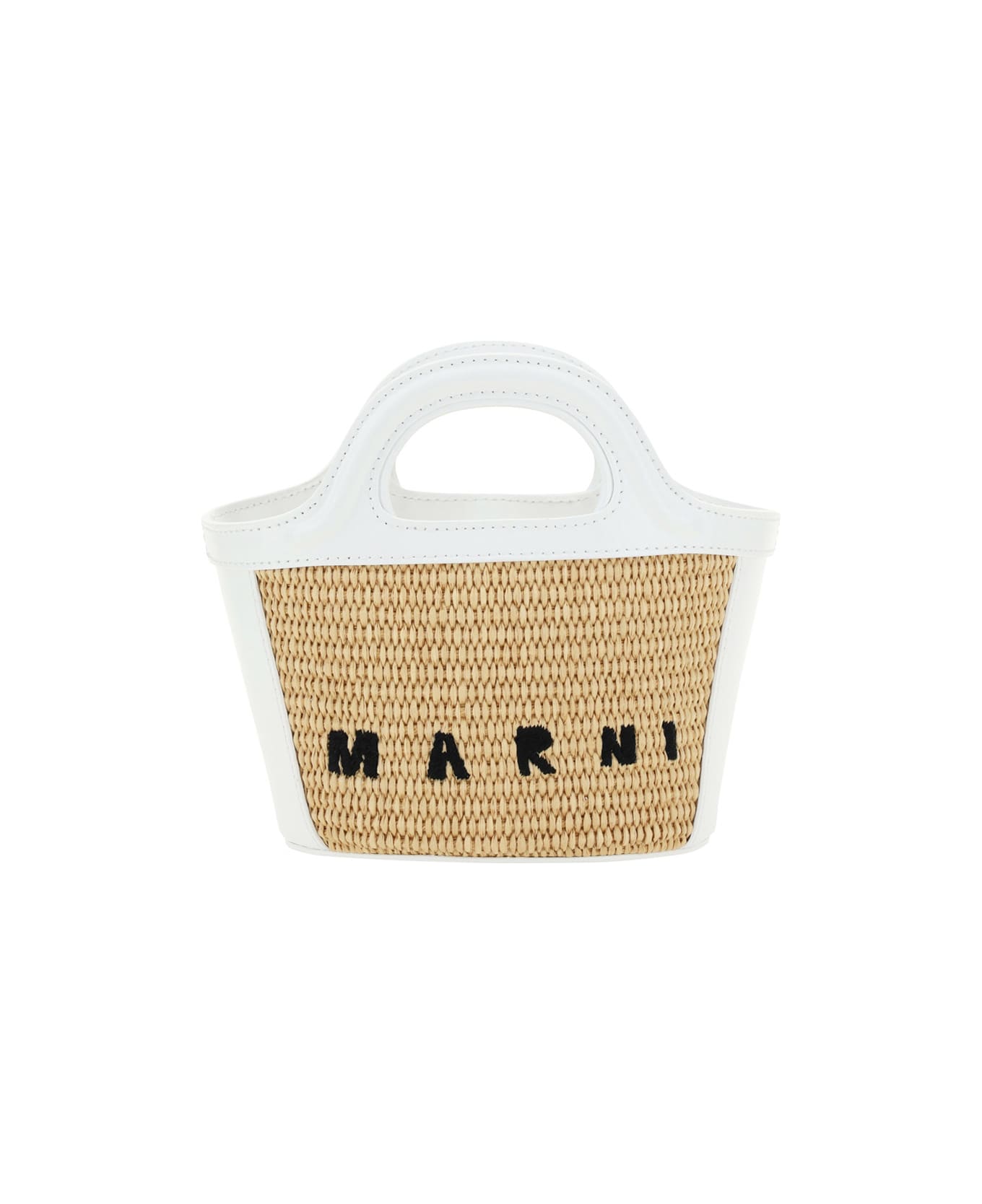Cotton and calfskin handbag by marni, two rigid geometric leather handles, removable and adjustable shoulder strap, contrasting embroidered brand logo on the front, fabric lining with leather welt pocket. Composition: 52% % Cotton, 52% % Cotton