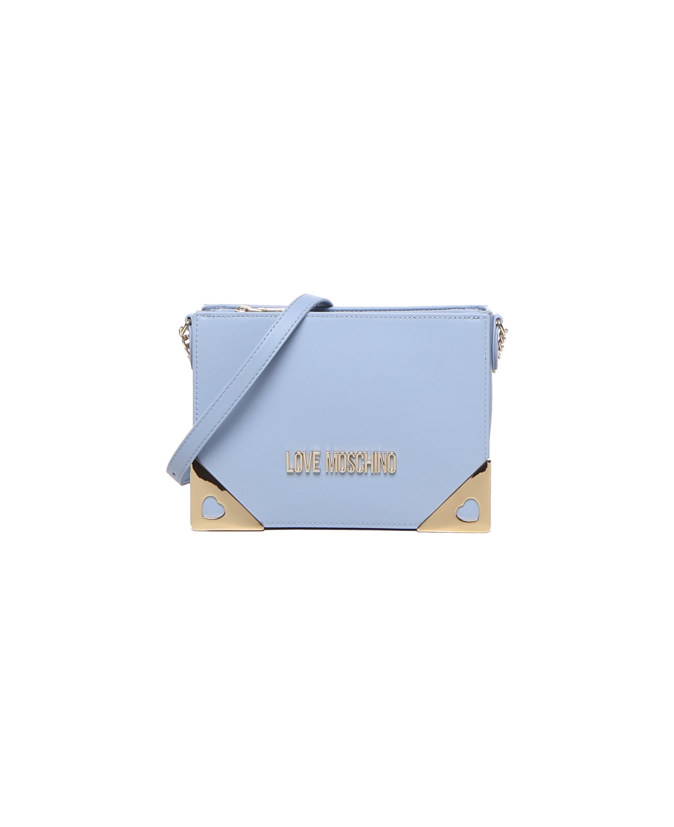 Light blue Shoulder Bag In Leather from Love Moschino -Heart plaque detail -Top closure with zip -Single shoulder strap -One main compartment -Internal slip pocket -Metal logo lettering on the front -Misure: 16 x 22 x 6 cm -Colour: Light blue -100% Leather