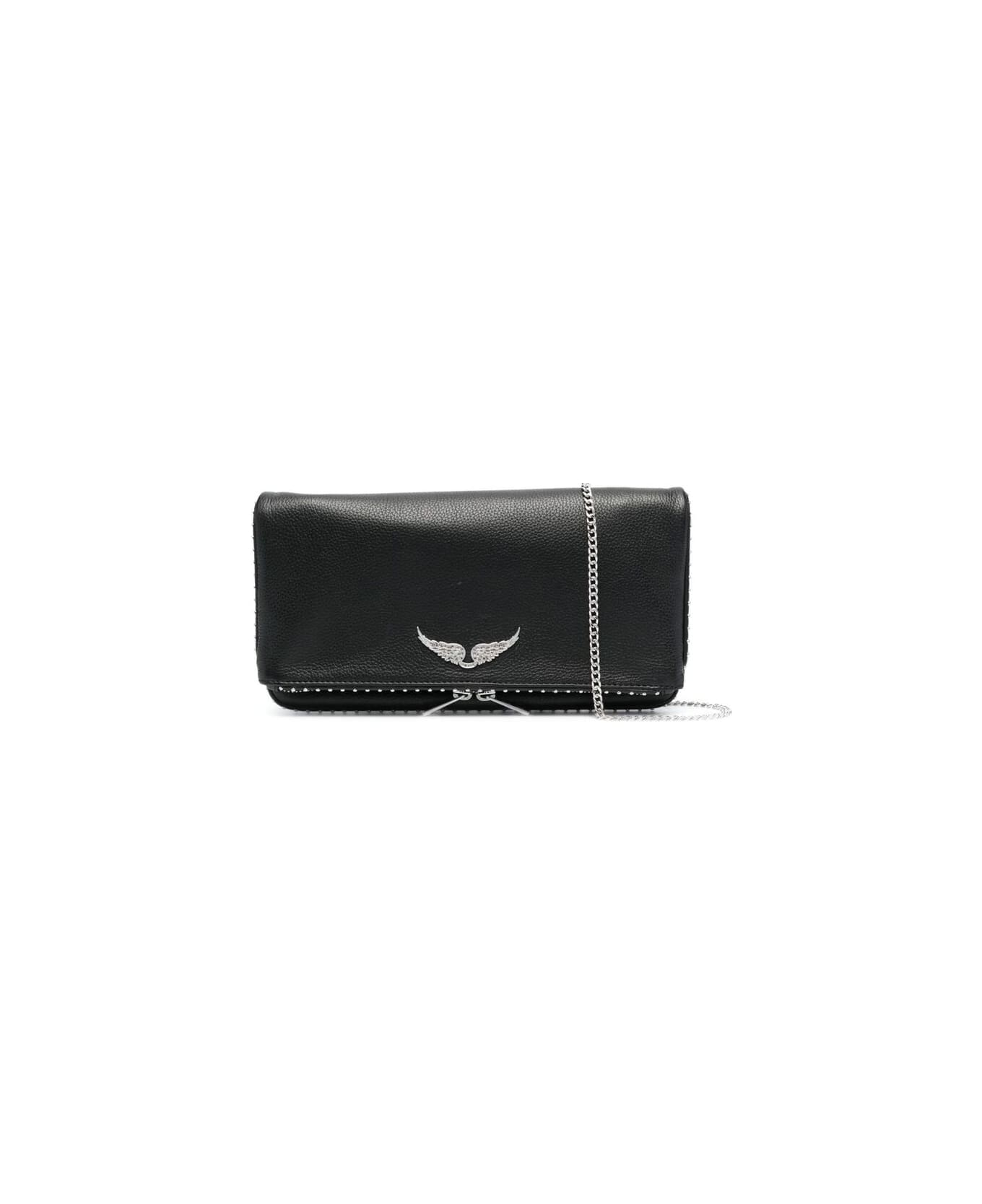 jet black calf leather logo plaque silver-tone stud embellishment foldover top concealed magnetic fastening chain-link shoulder strap