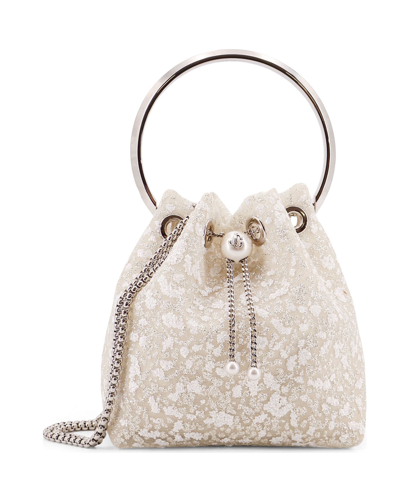 Metal handle Metal drawstring closure Mother-of-pearl logo detail Chain shoulder strap Unlined Made in Italy Nylon W: 14 cm, H: 15 cm, D: 9. 5 cm SKU: BONBONZGZIVOYSILVER