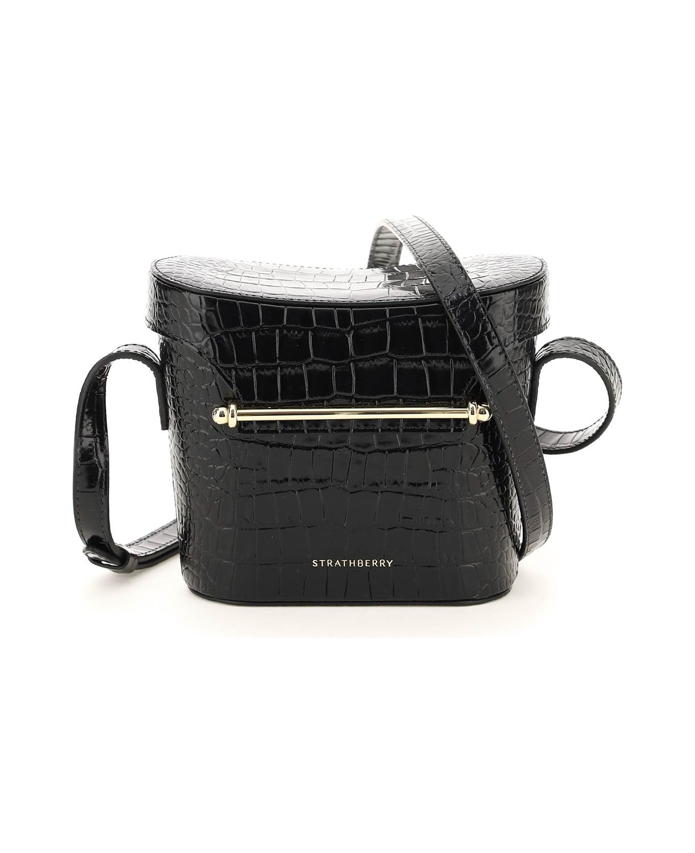 Safari crossbody bag from Strathberry made of croco printed calfskin leather and featuring a structured, sturdy shape. Magnetic closure, suede interior and iconic Strathberry Bar on flap. Adjustable shoulder strap.