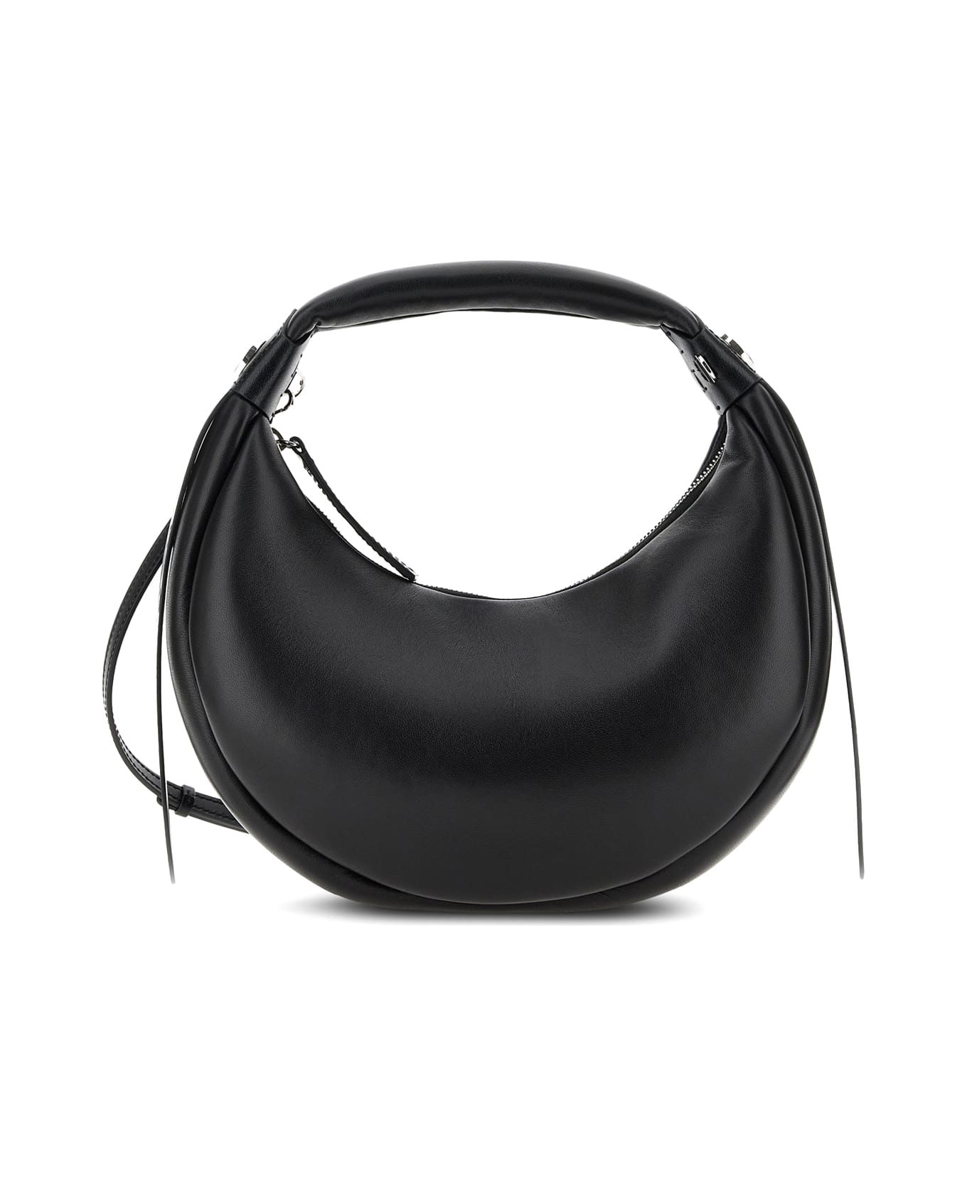 Hobo bag Hogan Bam Bam Medium size in black nappa leather, with rounded handle. Metal rivets, and embossed Via Monte Napoleone address logo. Internal pocket. Adjustable and removable shoulder strap. Size: 26,5 x 19 x 7 cm