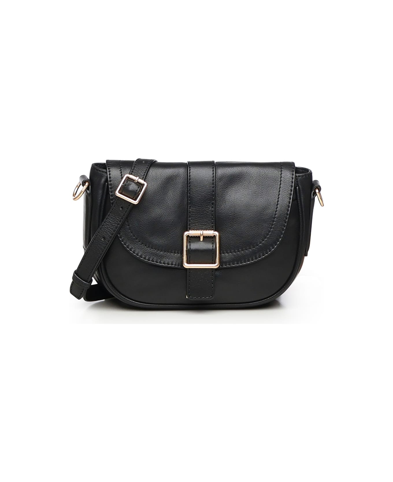 -Made of leather -Magnetic button closure -Metal lettering logo -Adjustable and removable shoulder strap -Dimensions: 24 x 19 x 8 cm -Color: Black