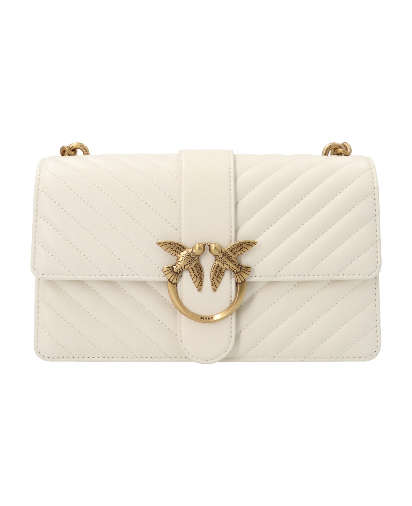 Love one classic' crossbody bag in leather with metal buckle and a metal and leather shoulder strap.