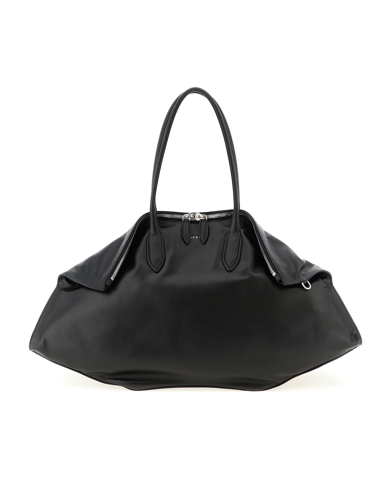 'Maxi Manta' shoulder bag in calf leather, sculptural structure with folded top edges and a rigid wavy base, front high frequency laminated logo, double fixed tubular handle, top zip closure, canvas lining.