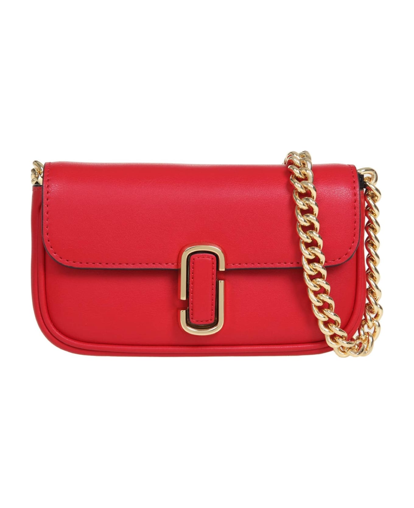 Shoulder bag in leather red smooth cowhide double j marc jacobs paper clip back slot pocket fabric interior internal slot pocket one internal zip pocket handle with removable chain removable and adjustable shoulder strap in fabric closure with flap and snap button measures: width 19cm height 12cm depth 4cm made in philippines