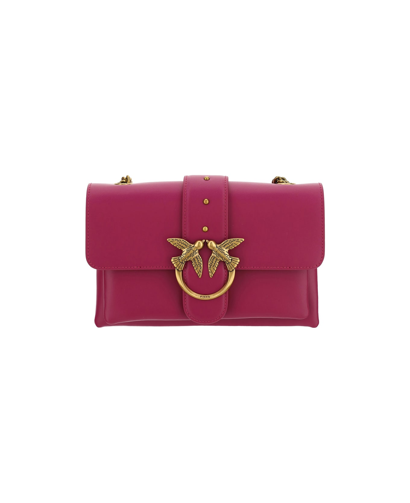Calfskin Love Mini Soft Simply Bag by Pinko, Love Birds Logo buckle on front, magnetic button closure, chain shoulder strap, internal zip pocket. Composition: 100% Calf Leather Bos Taurus
