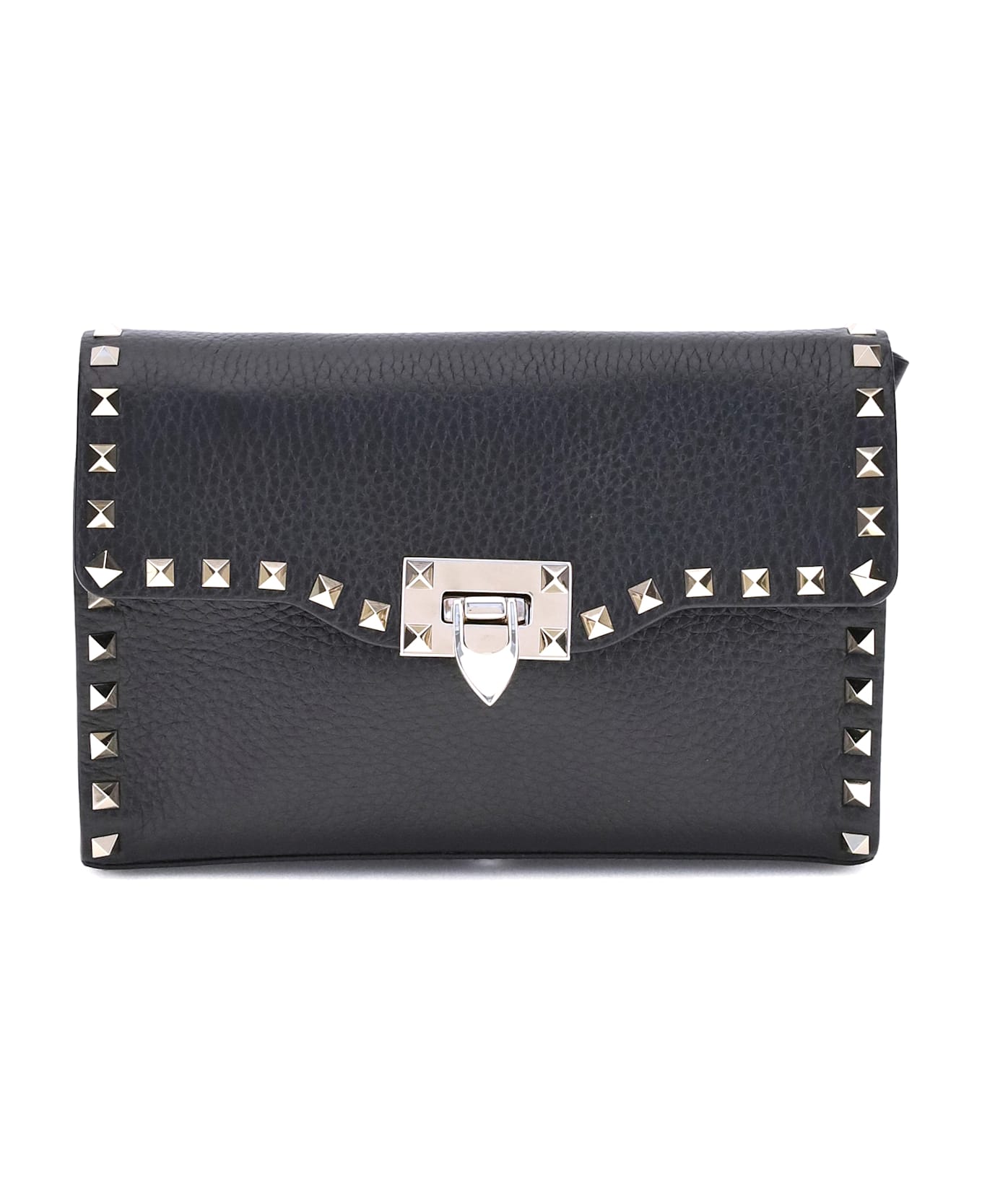 The rockstud leather shoulder bag by valentino garavani is crafted from grained calfskin with platinum-finish studs and hardware. featuring a hook closure and adjustable shoulder strap, it is lined with cotton and has an internal flat open pocket, combining iconic style with everyday practicality. Composition: 100% % Calf Leather Bos Taurus