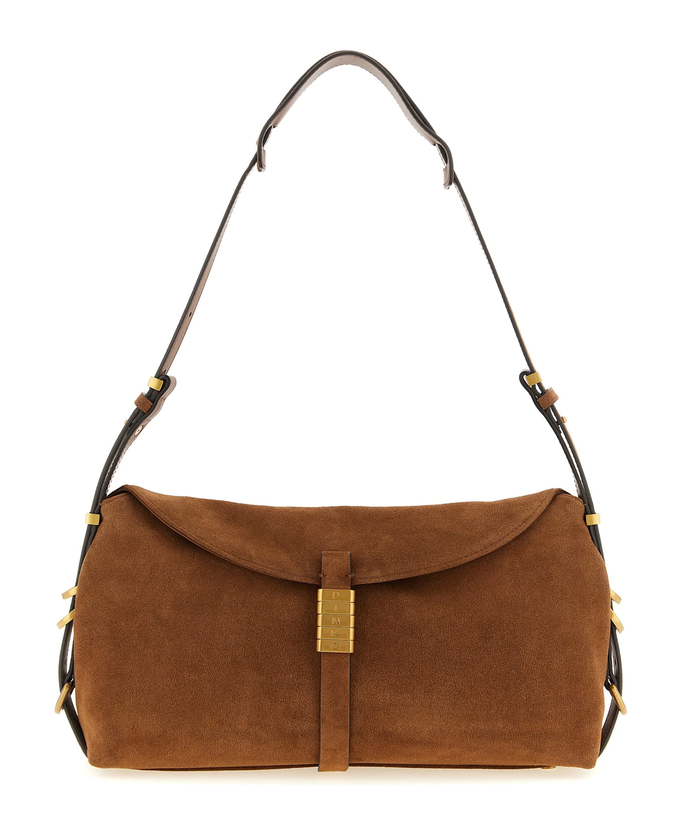 'Saddle Horizontal' suede shoulder bag, rectangular design, magnetic flap closure with front strap with metal rings detail with engraved lettering logo, cotton drill fabric lining, adjustable suede shoulder strap.