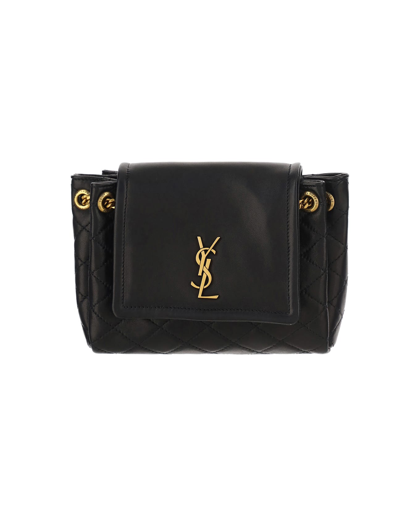 Calfskin mini nolita bag by saint laurent, slit pocket, gold front logo, metal chain shoulder strap, flap with press button, padded details on the external structure. Composition: 100% % Lamb Ovis Aries Aries