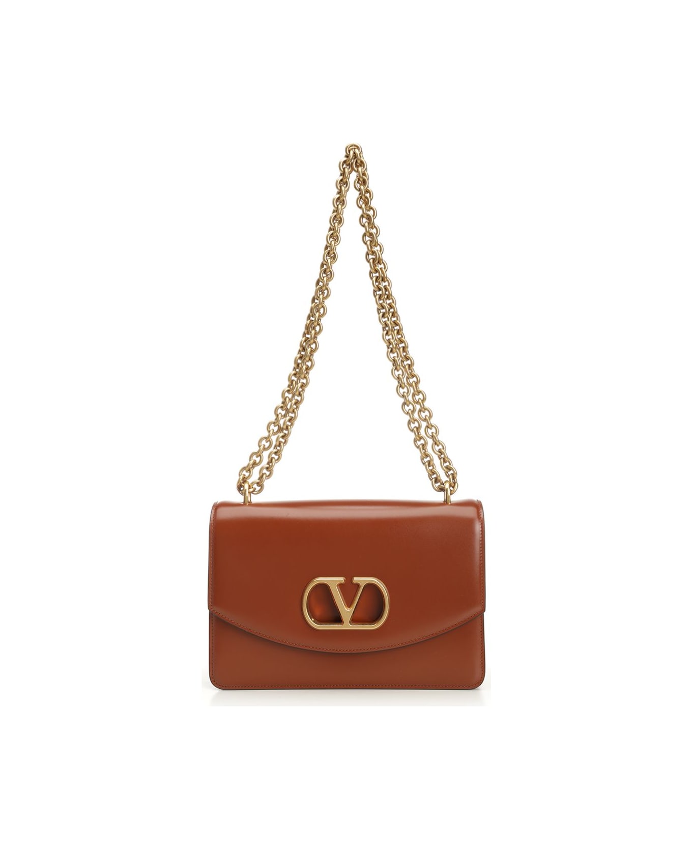 'VLogo' shoulder bag in smooth leather by Valentino Garavani, with metal VLogo detail on the front, metal chain shoulder strap, magnetic button closure under the flap, lined interior with two compartments, a zip pocket and a space for credit cards Composition: VT100%