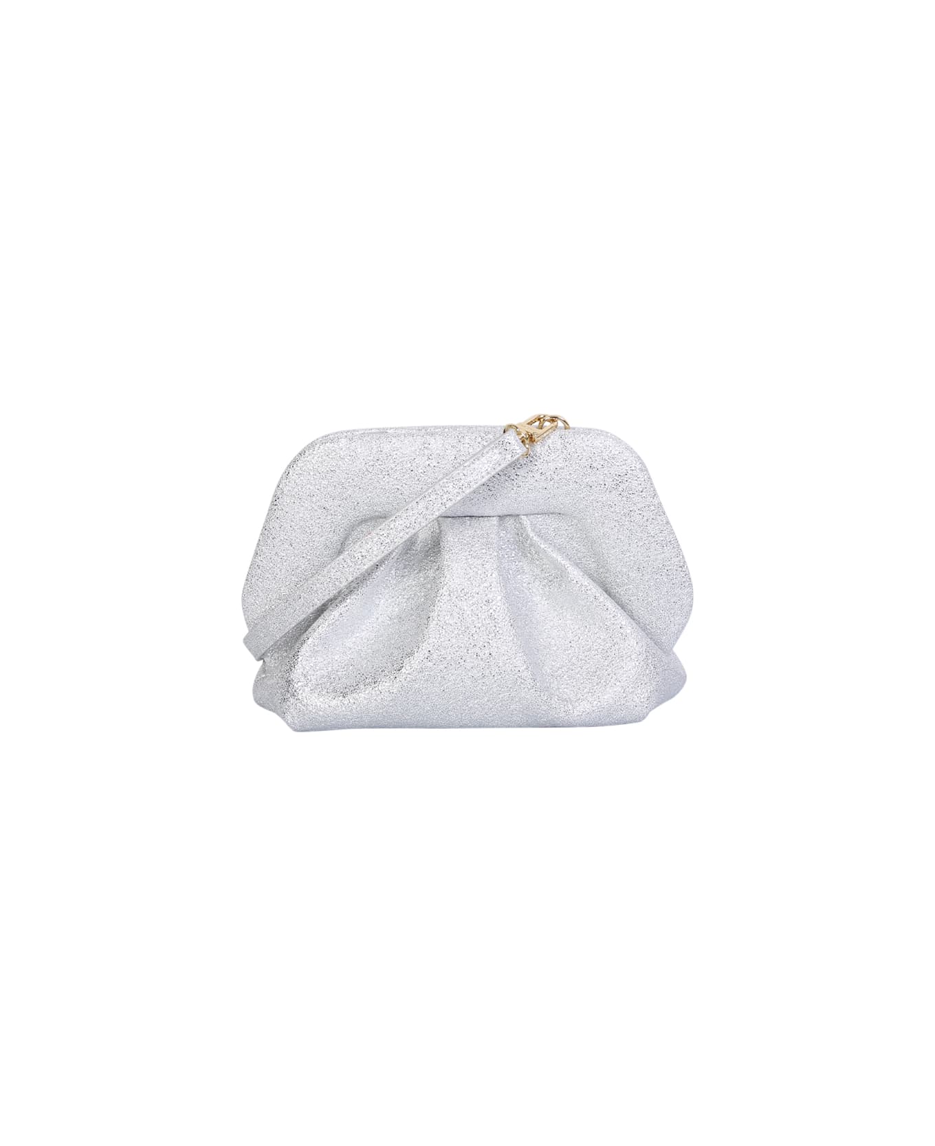 Top magnetic fastening. Main compartment. Internl logo tag. Clutch design. Detachable adjustable shoulder strap. Color: silver